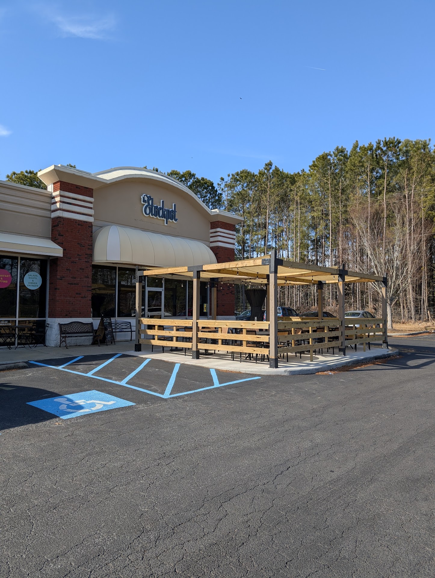 The dining area is bright and fresh with trademark Stockpot open kitchen and bar like the beach. Interior seating appears less than Norfolk, but certainly more than Virginia Beach inside and patio. Merchandise and bakery items are up front and displayed nicely.