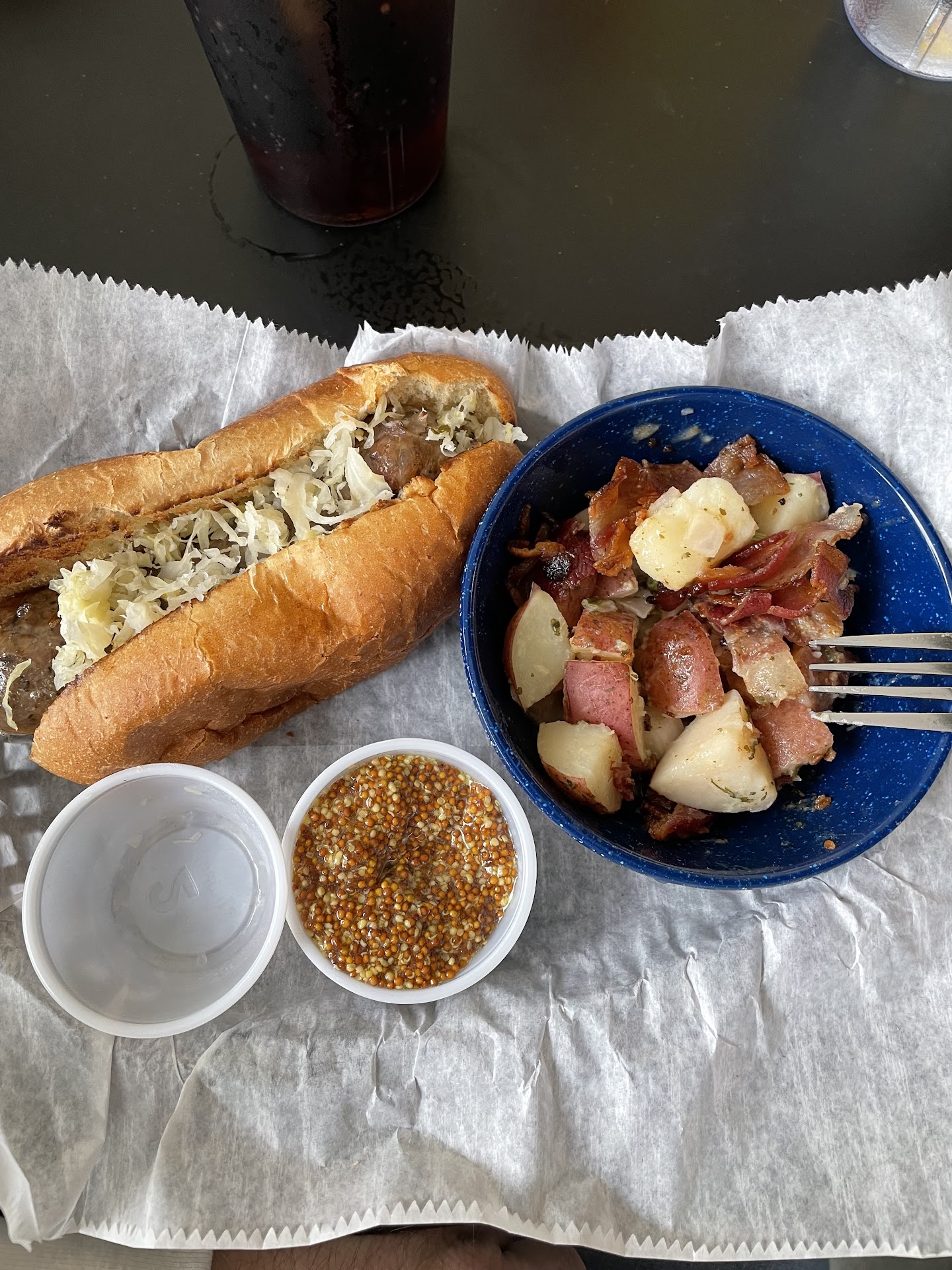 Service - Awesome. Bartender was really nice and helpful. He checked on me several times. Food - If the cheesy bread (Dogbones) wasn't so incredibly greasy (there was literally a pool in the center and underneath) I would say it was great, but that really detracted. Sorry I didn't get a pic. The Brat $14 for a small brat and no side??? Casualt pint has the drunken brat with Fries for $11. That was dry and really over priced. Tots were the saving grace today.