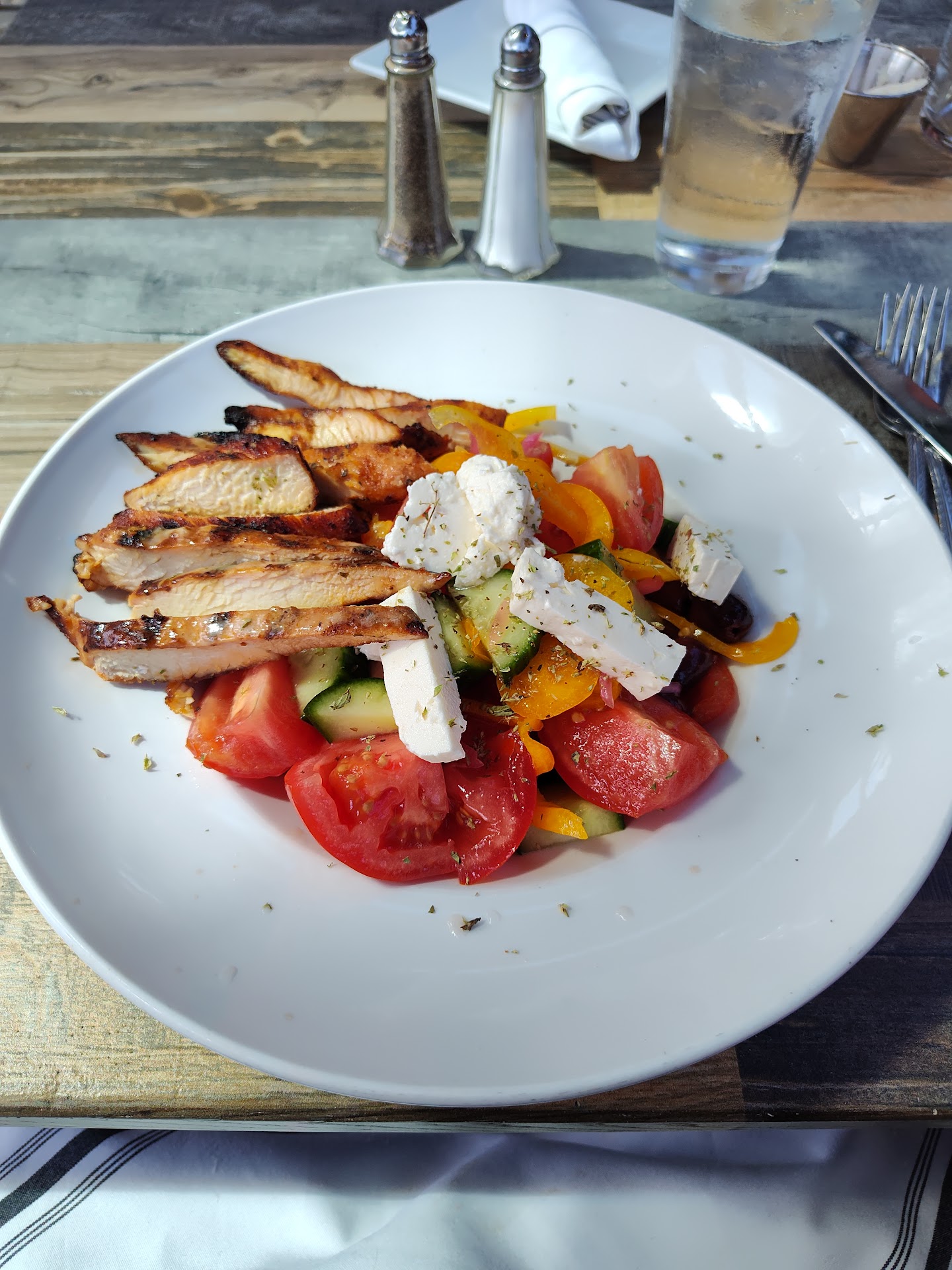 My plate looked like somebody just cubed a handful of tomatoes, cucumbers, and sliced onions, tossed it on the plate, slapped 4 cubes of feta on top, and finished it with a thin piece of chicken breast that was dryer then a desert in summer and made chewing on a leather boot strap seem more fun....and that's only after waiting almost an hour and a half for our food to arrive, my salad being the last thing to come out, a salad, and a measly salad at that, perhaps I was supposed to eat the massive plate it was on since that looked more filling!! (For perspective, I'm a 6"6, 290lb Male who does Landscaping for a living, I require quite a bit of food to keep this furnace fueled properly.)