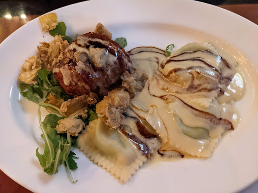 Read moreI ate here last night. Do NOT Go there. I don't care what the Local Guide on Google says he is obviously bought and paid for and/or fake. In particular the entry is scary and treacherous. Pray that they don't seat you upstairs,,,very very tiny and steep stairs an EMT's nightmare. The interior is dark and poorly lit. Old and out of date. But to any one with mobility issues of any kind even a cane. This place is a cramped over crowded nightmare. Our reservation was for 7 pm. It took them about 15 minutes to bus and clean the table. No busboy, 4 or 5 waiters running around multi tasking. They were overwhelmed, with no clear purpose. It took another 15 minutes for our server to take our drink order. No Sugar or Splenda for the ice tea. Now for the crap they called dinner. Then another wait of about 15 minutes The house salad was swimming in oil and extra vinegar, and more like a bell peppers salad that a tossed salad. Served with burnt toasted sesame seed bread. We both ordered grilled scallops and shrimp over crab and lobster ravioli. Mushy farm raised shrimp. no lobster or crab in the lousy ravioli's. The server took off the beverages because we had to wait. $71.00 dinner for 2. The server got 20% but he...