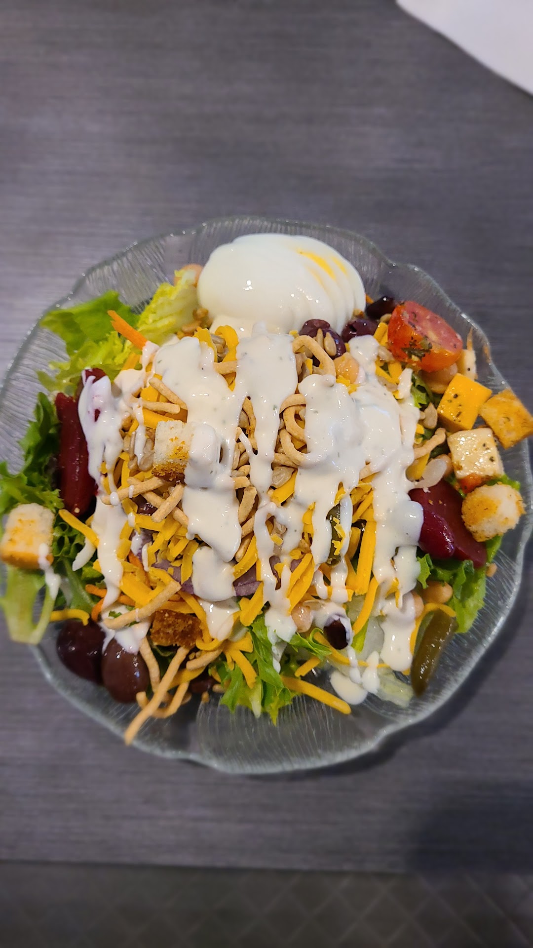 We came here on a Thursday, about the time they opened (11:15am). We drove up from Delaware, about a 20min drive. When we arrived, the restaurant was spotless and the hostess was friendly. We sat at our booth and our waitress asked us for our drink order and then we told her "we're here for the Salad Bar". She smiled and let us do our thing!! For starters, the salad bar was massive, fresh, and colorful and boy did I load up my plate (I actually had 2 plates lol). My mom ordered a crab cake dinner to go, but the chef made it broiled. We informed our waitress and she apologized and let the owner (Kevin) know. Kevin was very nice, apologized and gave us a complimentary dessert which we got a raincheck on because we were soooo stuffed from the salad bar lol. By the time we left, the restaurant was full of people and lively. There's also a nice sized bar on the other side with an area for live music that the restaurant hosts and an outdoor deck/patio area. I highly recommend Ashley's Restaurant and Bar for an afternoon lunch or an evening dinner. Great for small or...