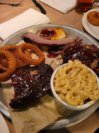 This was a planned outing specifically for lunch after watching an online review of this dining venue. The main focus of this venues 3 locations is Barbecue and Bourbon. I took my son for this adventure to their Chesterland location which I believe I heard was their first restaurant. It is a small chain with 3 locations in Northeast Ohio. Specifically in the greater Cleveland area. The dining area gives off a very welcoming feel as the smells of smoked meats waft through the air. The menu has a nice selection of offerings from appetizer's, lunch, and dinner. They are NOT open for breakfast, although I'd love to try some of their Brisket in an omelet. When trying out a restaurant like this for the very first time. I often find myself wanting to get the full experience in my first visit. We actually limited ourselves, though, trying the smoked chicken taco appetizer (hands down the best I've ever had) and the Brisket Melt. There were so many delicious looking options on the menu. However, the Brisket melt won out on a technicality. You see, my boy and I both LOVE mushrooms, and the melt features a side of Bourbon Mushroom Sauce. OMG, let me tell you something, the sandwich was great! With the sauce, too.... Out of this world. Large pieces of mushroom in a Bourbon gravy like sauce. And I could actually pick up the flavors of the Bourbon. The Brisket melt comes with a side of your choice. I chose the thick cut Onion Rings for a dollar more... Shades of Bishops from the days of the drive-in diners flashed through my head as I devoured the O-rings! We also opted for some fresh cornbread. The kind that actually has kernels of corn in it. It truly reminded me of visiting friends in Jacksonville and going out for some of that delicious Sothern BBQ but with a Northern twist. If you love a good BBQ, this is a must visit. Take your time and savor the flavors, I don't think you'll regret it. Please leave a review of your experiences on Google Maps. I'd love to know about...