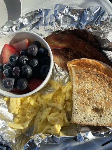 Ordered the Sampler Eggs, Bacon & Sausage Patty w rye toast + fruit cup (seasonal fruit) strawberries & blueberries. Sampler 7 Fruit cup 4 or 4.50 ?? Egg up charge .50