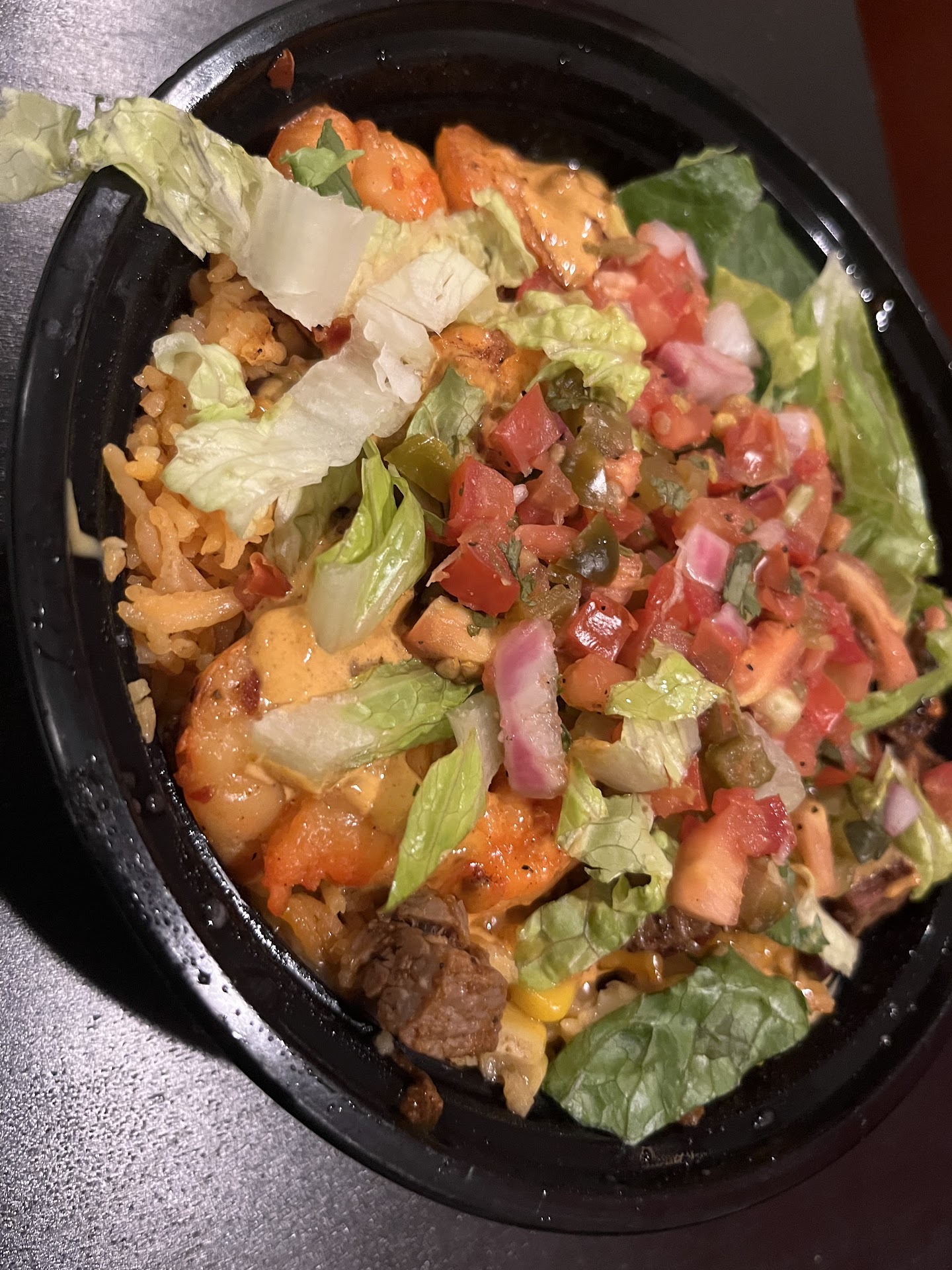 We're still working our way through trying the menu, but so far we've tried the Burria Beef tacos, regular beef tacos, thai chili tacos, fish tacos, elote, rice & beans, carne asada bowl, philly cheesesteak quesadilla, oreo funnel cake sticks, oreo churros, strawberry cheesesteak churros, and blackened salmon tacos. I enjoy all of these but if could rank top 3 entrees I'd say the carne asada bowl, Burria Beef tacos, and blackened salmon tacos. Hubby's top 3 are the philly cheesesteak quesadilla, carne asada bowl, and the beef tacos (regular & Burria). All the desserts that we've tried we've loved too. I want to try the Birri Ramen next!
