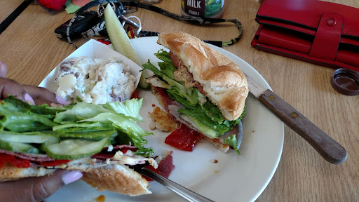 Food was fine but the blond lady working the counter is a weirdo. We walked in and the person in front of us was done ordering, we proceeded to the counter and this lady just stared at us, no good morning no can I help you, nothing. So I greeted her with a good morning and she just stared at me. She took our order with no thank you, no nothing. Ok whatever, maybe she’s just not very friendly. All the tables were taken but at one point other customers left so we took a seat at the vacant table to wait. This same blonde lady came over and started wiping the table without warning, swiping the crumbs onto us. I almost left at this point but we were hungry. You can tell this place is very unfriendly to outsiders, as we watched as people that were clearly locals came in and they were greeted and treated as customers are typically treated. My husband was sitting in front of one of the coolers and another woman who seemed to also work there came and stood right next to him staring. Eventually she said I need to get in the cooler. The word you may have been looking for was excuse me???? Instead of just staring at someone??? When our food was finally ready the first blond lady came out, plopped it on the table and walked away, with no thanks, no have a good day, no enjoy, no nothing. I’m not sure if they recognized that we were not from the area or if they just lack manners and customer...