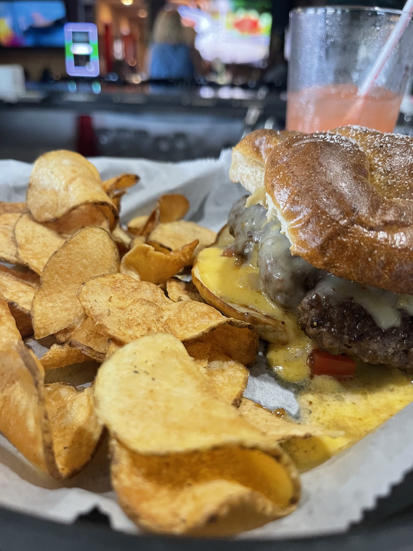 Read moreI've been here for dinner twice since moving to Chesterfield and it's my new favorite! Both times I went there the was busy but I didn't have to wait for a table. The servers were fast, friendly and keeping our drinks full. Management checked on our table to see how everything was. But best of all, the food is damn delicious! First visit, we shared a pizza that was not shy on cheese and toppings and the sauce and crust were perfect. On my 2nd visit yesterday I ordered the fish and chips, substituting fries for onion rings. The fish was cooked spot on, not dry/not under done, and the beer batter was EXACTLY what I was hoping for. Also, they have the BEST onion rings!! My family ordered the 2 for 1 burgers and I was instantly jealous when they came to the table. They were pretty big, oozing with cheese, and the pretzel bun was gorgeous. I was told their perch is something to write home about, so I will be back soon and plan to try everything on the menu (after another pizza...