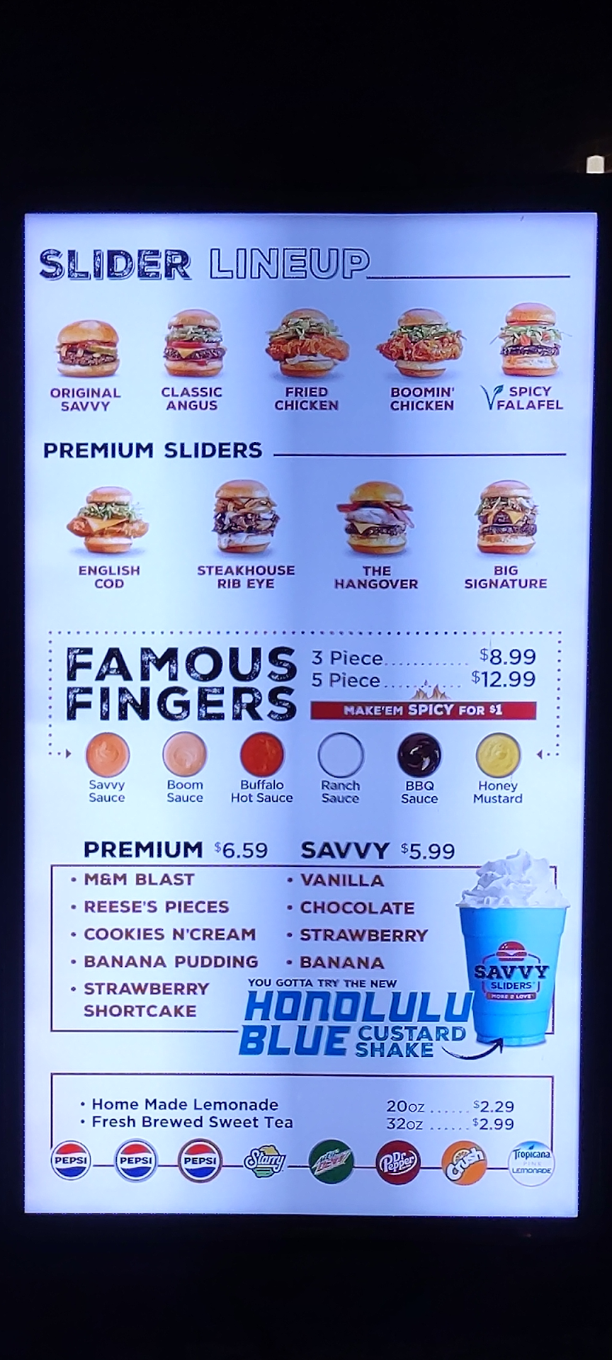 The markup on trying a signature slider is eyebrow raising, the prices just for seasoning the not generous portions of mushy crinkle cut fries is wild, the prices are just a bit too high across the board although the prices for slider packs aren't unreasonable. But to take advantage of it there would have to be one or two sliders we loved enough that we all wanted to eat them again and if even my kids aren't impressed it's not happening. Oh and at these prices having Pepsi products instead of Coke is ludicrous.