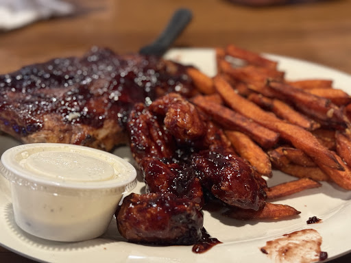 I was there to meet some friends for a cigar. I will preface my review, by noting that I am not a bar guy. I don't enjoy the extra loud whatever. However, with that in mind, I will say I liked The Bush. It was clean, well lighted, and the service seemed very good. I came in and my friends hadn't eaten yet, so I sat at their table. The TV's were on, though I didn't hear them. Music was playing, and it seemed loud, as did the din of multiple conversations. Like I said, I'm not a bar guy. When the food was served, it was well played, and the fries I sampled, were tasty, though could have been crispier. Waiter's fault or cooks? I don't know. All the food served looked delicious, and my friends seemed to be impressed. I did like the wood tables, set up, and basic layout of the dining experience. I will go back to sample their wares, and report back. As we were venting outside for our smoke, I stopped a waiter to request a drink. Much to my chagrin, he knew not of a Tawny Port. Instead of going into detail, or going to the bar myself, I just ordered a Elijah Craig bourbon, neat. The kid looked surprised for some reason, but at least he understood that one. The outdoor seating was nice. I could see their outdoor area was trying to accommodate several things, with a tiki bar, covered tables and an open area, as well as grass for Cornhole, and other stuff. The tables were nicely strung against the wall of the restaurant, and had a heater or two for when the nights cooled. The metal barstools weren't the most comfortable for some bigger guys, but I had no problem with them. It was a nice area for a cigar, and the decor was not only picturesque, but loaded with conversation pieces. I complemented the owner on that one. Do you recap, I love this restaurant being very close to the freeway. It is nicely laid out, I love the wood as opposed to marble and steel and white paint. The servers were very pleasant, and not too slow, though it did take this guy 2-3 trips for my son's second drink. I mean, he came out, but plumb forgot it. The outdoor atmosphere was also nice. And the fries were tasty, but could have been served crispier. Like I said, I'll have to come back and order food to get the full effect. If definitely go back, despite my personal reservations on bars....