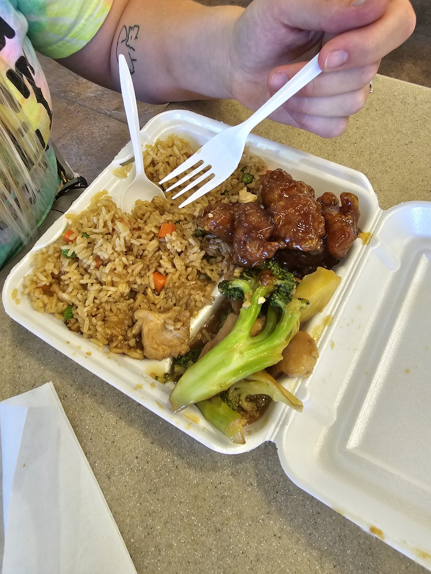 Read moreThe food was blah. I felt like they were cutting corners. They used spaghetti noodles for the lo mein which was disappointing. The fried rice was dry and tasted stale like it was left over from another day. The orange chicken was ok. There was only a juice place, Philly cheesesteak and this stall in the outlet food court which was really sad for an outlet that gets a lot of foot traffic. I noticed after I sat down and ate that the cook in the back was not wearing any sort of head gear and neither was the...