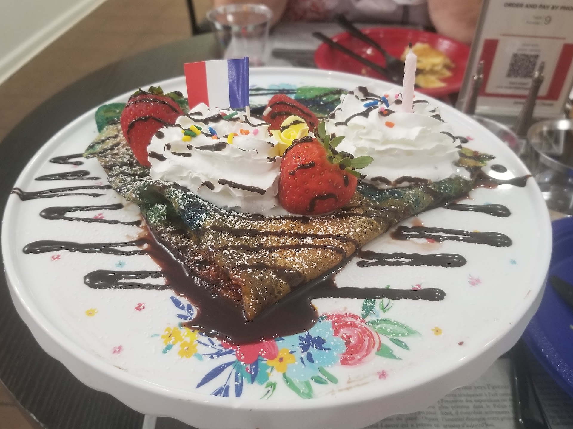 Read moreI'd love to give this place 5 stars, but just can't quite do that. We've been a handful of times (maybe 5 or 6) at this point, and ever single time my lactose-intolerant husband actively selects "no whipped cream" for his crêpe when he orders through the semi-required online ordering service. And every single time, it comes with whipped cream. Incredibly frustrating. Why have the feature on the ordering platform at all, if whomever is cooking is just going to ignore it? The most recent (and probably final) time we went, he even put "NO WHIPPED CREAM" in the little comment block as well as checking that option, and guess what? Whipped cream.
