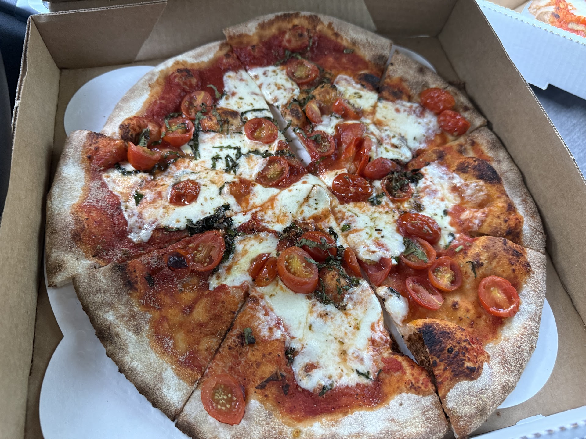 Opening a box labeled "Napoli," we anticipated a quality pizza, but we were sorely disappointed. Despite having an excellent location and presumably a good oven, the quality of the pizza was abysmal. It was infuriating to pay $44 for two Margherita pizzas (one with mushrooms and one plain) and receive such poor quality food. They even added tomatoes to the plain pizza without asking.