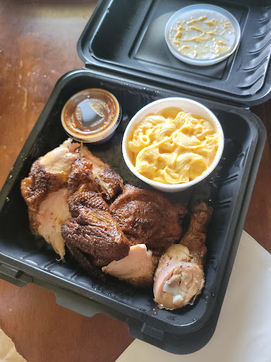 Read moreOrdered online on a Saturday around 2:30pm for a pickup at 3pm. We arrived at the window for our pickup shortly before 3 and only waited about 5 minutes for our food. The online order system is very straightforward and easy to do. The drive home took about 20 minutes and we ate our food right away. The food was very well packaged in their containers and the fries were wrapped up with syran wrap. The food itself could have been better. There was no seasoning on the mac n cheese, and the fries tasted like they were heated in an oven. They weren't salty or crunchy. The 1/2 plate of chicken came with the bone on it. Unfortunately, I didn't know this when ordering and if i had known, I wouldn't have gotten it because we could have stopped by a grocery store for a rotisserie. The chicken was good, don't get me wrong. However, I feel like I could have gotten a better value by having it pulled from the bone. My husband said the half slab of ribs were...