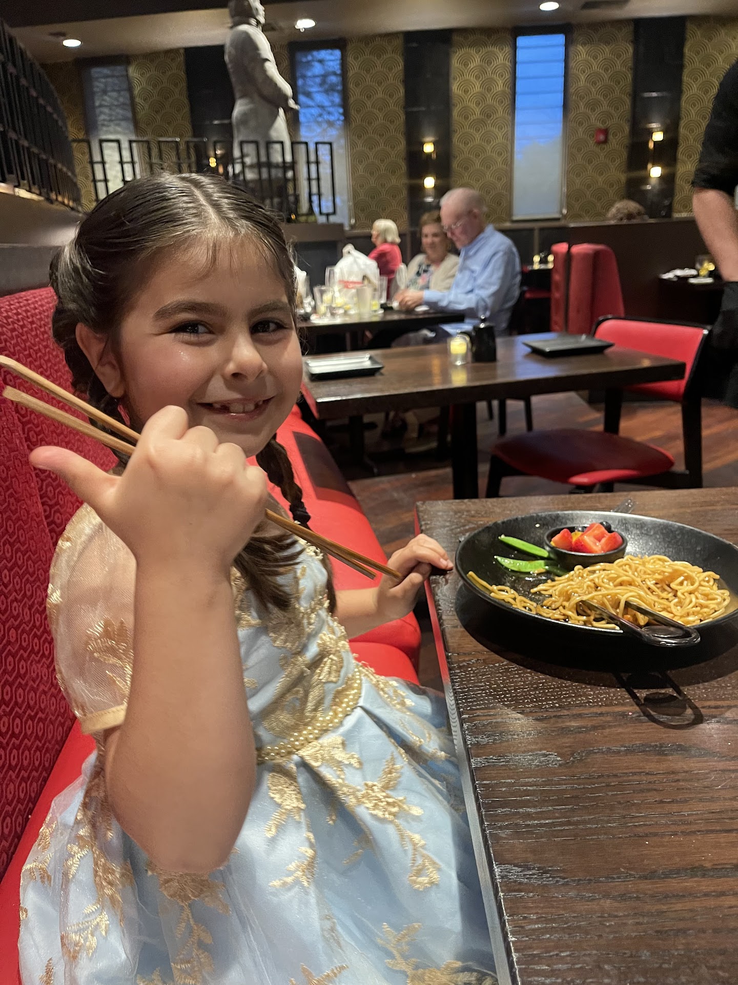 Kids: Kid friendly with easy grip chop sticks and coloring menus with two crayons. Kids meals come with fruit and a choice of side. Noodles are a top choice with honey chicken being a close second.