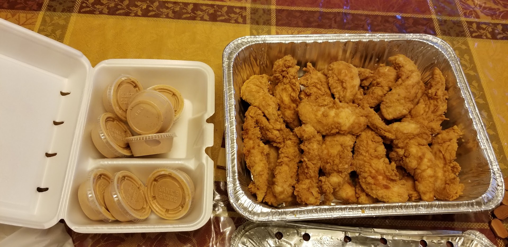 2 stars because the food that you do get is good, you just may not get it all, you may have to wait a long time, and you probably will not receive a smile with your service. Other Cane's locations have much better and more accurate service so it's not the company, it's just this location.