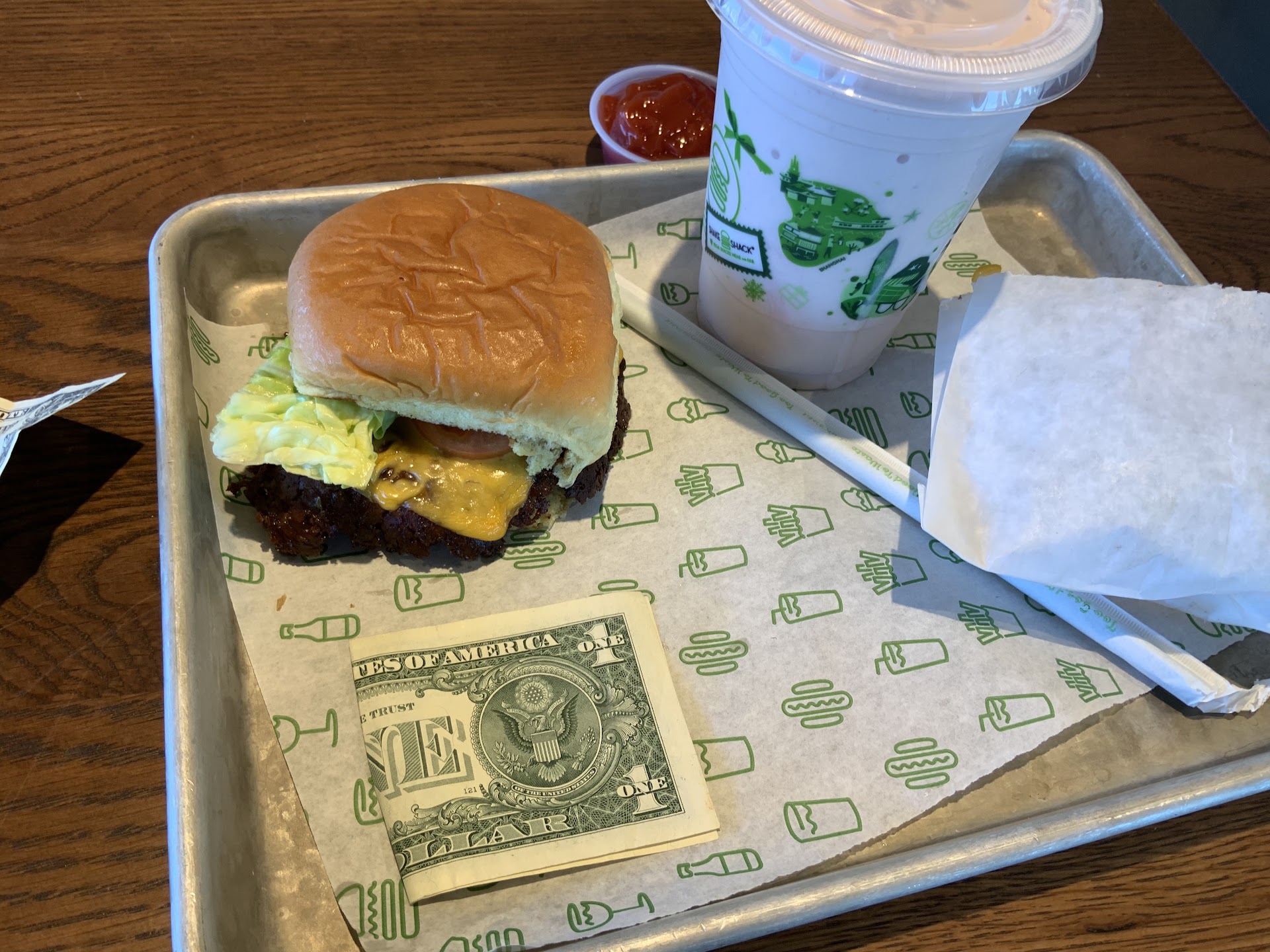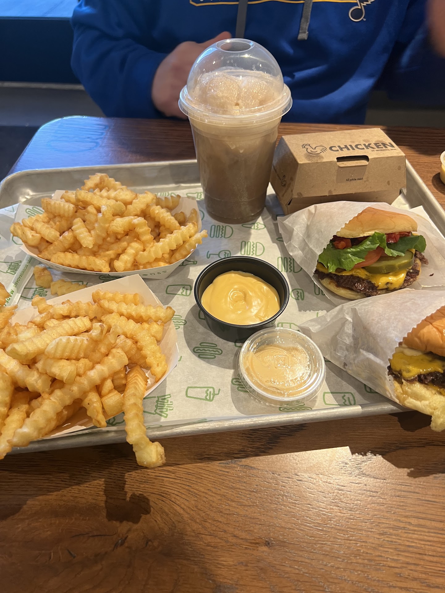 Read moreFirst timer at Shake Shack this evening. Not only was the food (and shakes) delicious but the service was great and fast! They were packed so we were worried but we were surprised when we quickly found a table and our food was delivered not long after. There was an incident where an employee accidentally dropped a tray and it slid off the counter and hit my back. It was empty and I was not hurt so no big deal. But what happened after will stick with me forever. The manager quickly came over to apologize and said he would rectify the mistake made by the employee. The young man who dropped the tray came over visibly flustered and embarrassed and apologized. He went to his manager and I watched this man comfort this boy and assure him that it was okay. I could tell the boy was so upset but this manager treated him with so much compassion and it just warmed my heart. I love seeing things like this and love seeing the youth work hard, take accountability for their actions, and superiors coaching and treating their employees with respect. Thank you Shake shack for a wonderful meal and a...