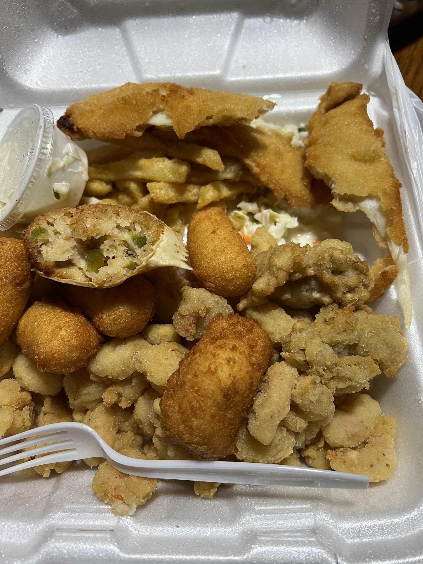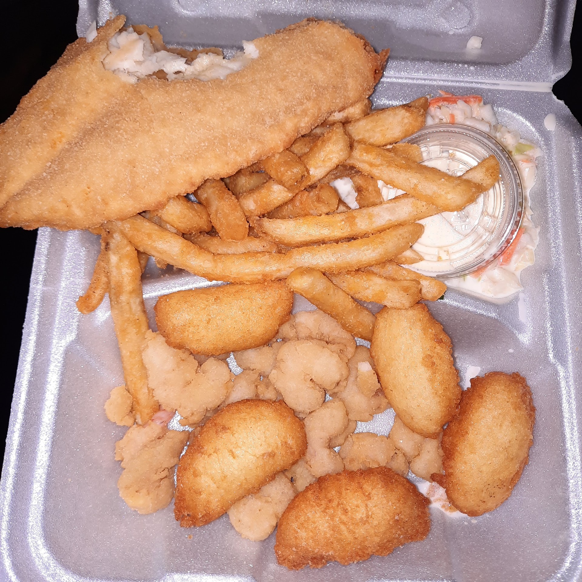 Read moreOrdered 2 shrimp poboy specials , with sauce on the side. Got home no shrimp, just bread lettuce and tomato. Called them asking if i could just get the fried shrimp dinner instead, which would have been cheaper. They said no we'll hook up up. I go back and they give me a tray with cold hush puppies, cold fried shrimp and the cole slaw was on everything. Now i can't eat any of it because when you heat it up its all rubbery. $25 later----Lesson learned l will never eat here again. Very bad attitude from staff and verypoor...