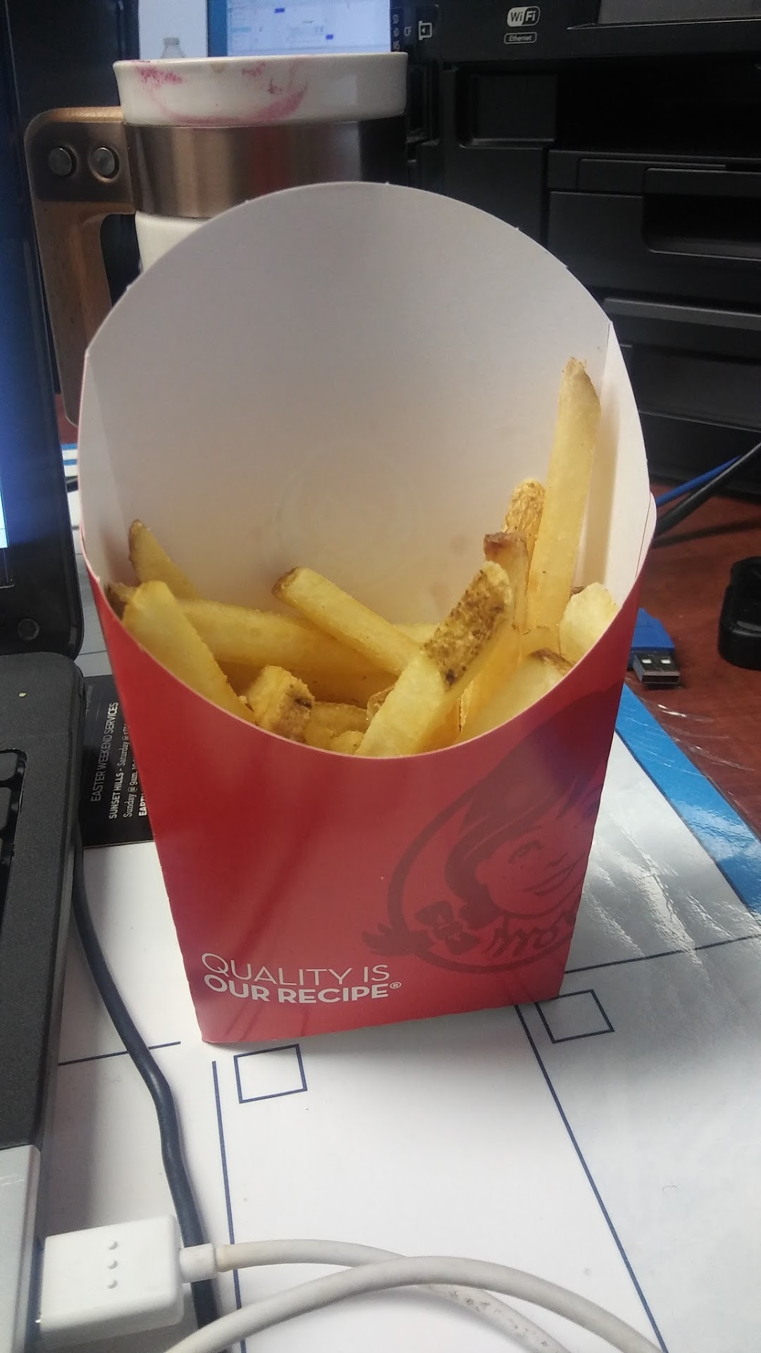 Read moreBesides the staff being a little ruff on the drive thru intercom, my past experiences have been tolerable at this specific location. However, today was a little different. I was in the drive thru line for nearly 20 minutes (the line wasn't that long). The lady at the window was fine (neither good nor bad). When I got to work and started to pull my food out of the bag; I noticed that my fries were half way full. I thought, "Maybe they had spilled inside the bag." No! That was NOT the case. Not a single fry was at the bottom of the bag. I'm not asking for a bag full of fries. However, I think filling my fry container up is not too much to ask for when ordering the Cod Sandwich combo. Or any combo for that matter. I tried to call and no one ever answered. It continued to ring until an operator disconnected the call. I give them a 2 star rating because my food was good and the lady at the window wasn't rude, she wasn't the most pleasant either. However, I believe in being fair. My picture is no...