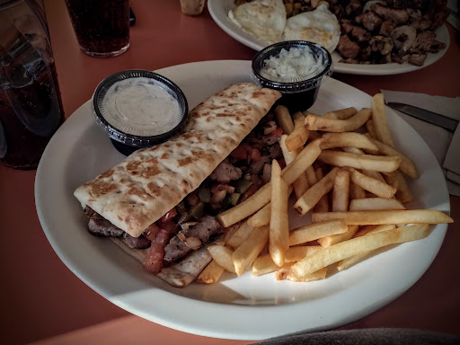 Food: I ordered the "gyro" which is by no means a gyro as it's pork. If you're willing to overlook that inaccurate name for the sandwich it is actually legitimately delicious. The meat was well seasoned, tender, and juicy. It was, to quote my husband "a surprisingly high quality of meat." It was also a fairly large size pita sandwich; I had ordered it as a basket and it was served on an actual platter-- huge.