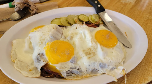 Atmosphere: The building is getting on in age and the booths are small. Some seats at the counter are ripped and the color scheme of the interior is very mid 90s roadside diner, complete with taxidermied fowl in the window. If that's your thing, you're gonna love it. If you wanted more formal dining, you may feel put off.