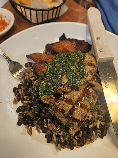 4.7 This place is so close to being perfect. The staff is friendly.The environment is very low key.It's not too crowded, it's not overbearing. The wait isn't long, but not so short you have to question if it was cooked to order. The plating is beautiful. The music is refreshing. The only thing that I would suggest is the food needs more flavor. I mean, even a pinch of salt or Adobo (suggestion) could make a difference. It doesn't need to be high blood pressure salty, but there's just none in there. Those plantains had to be the best i've had in a while. The lamb chops were perfectly cooked. Steak perfectly cooked. Pasta was blan not sure if butter was dadded, just taste like cream, and they give you a lot of pasta with only 5 to 6 shrimp. We just needed salt like everything else. I was literally at the table, shaking like a salt shaker haha. Just shaking away. Now, the one thing that was well seasoned was the calamari đproblem was it was very thick, so it was super chewy, it was almost like biting through celery. Other than...