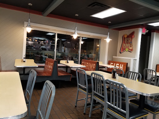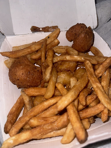 Fish was smaller,tough dry ,overcooked & a little salty. Hushpuppies were hard half way through Waffle fries weren't hot ,& were very tough and chewy,& hard.. not hot & crispy.