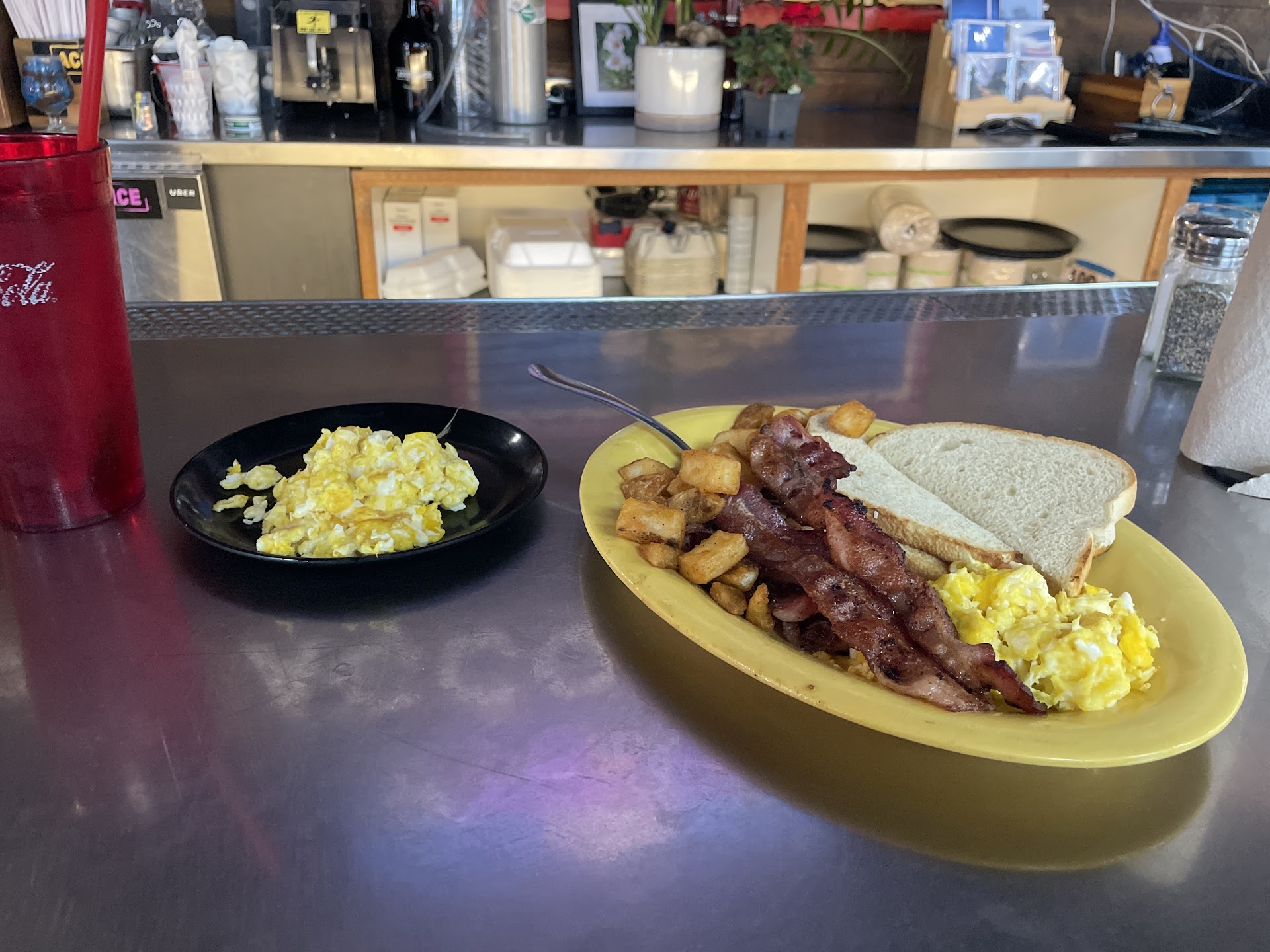 Read moreAs locals, we stopped in to have breakfast, twice but only ate once. The first time we went in for breakfast we were told they were out of about 50% of items on the menu so we left. About a month later we gave it another try—huge mistake. Our visit started out with waiting to be seated for about 20 minutes while no one else was there…literally, not even staff. Once we were seated, finally the bartender came out and took our order. He was literally dripping in sweat and out of breath the whole time we were there. We ordered a breakfast burrito and Mexican skillet. The burrito was dry, bland, and the meat inside was burnt. The skillet was small, bland, and zero sides, sauces, condiments, or even flatware were provided for either entree. Toast was extra water was never served. $45 later we decided this was not a breakfast place that we should give a third try. As a local, I recommend going someplace else for your hard...
