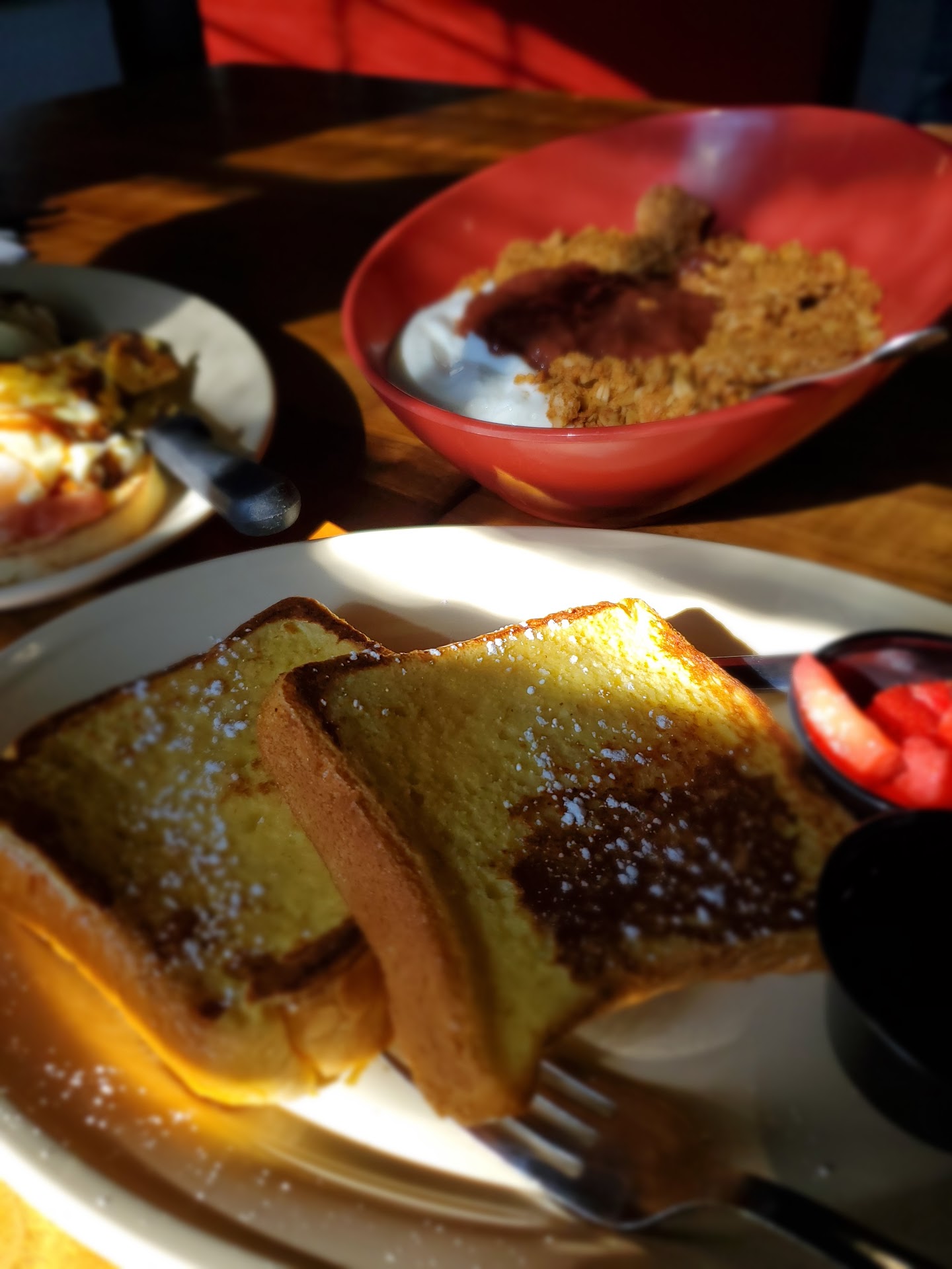Read moreI wish I could post a review of the food but I didn't even get a chance to try it. My mom, sisters & I came in for breakfast. We waited in the lobby for about 20 mins (watching employees walk by) before walking up to the desk (despite the sign saying "wait here to be seated") and learning we had to get on a wait-list. We waited another 25mins to be seated. When we were finally seated we were given breakfast menus, our server took our drink order and returned to get our food order, this is when we learned they stopped serving breakfast at noon (must have missed that on the menu?). We ended up leaving. If we had been greeted when we arrived we would have been seated well before noon and this would not have been an issue. It would also have been helpful if someone had mentioned (when seating us, when taking out drink orders, when getting on the wait-list...) the time frame for breakfast, as that's what we were...