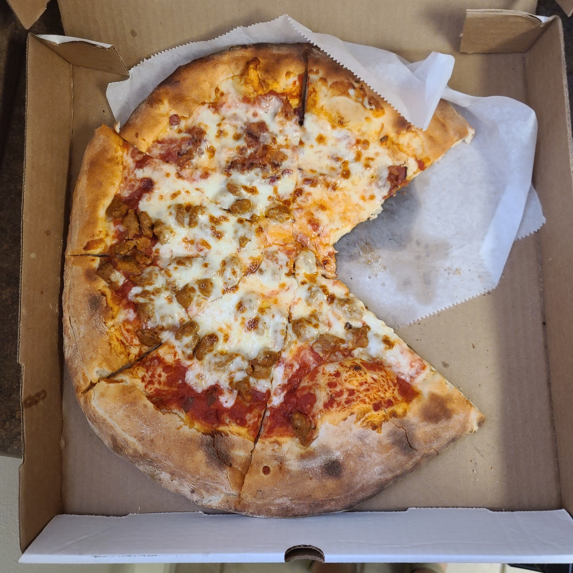 Read moreWe showed up about 5 minutes after opening on Friday, July 25th, after watching the rodeo. They were already full, no room for 2, indoors. There had just been a huge thunderstorm so we weren't sure about sitting outside. That's all they had so we accepted the table outside. I'm so glad we did. Their staff was rushing to wipe down all the tables and chairs and get everything set up for dinner service. We had a nice little table on the edge of their super cute back patio. Thankfully it didn't rain anymore, in fact the sun was blazing. Our waitress was there quickly. We loved her service and personality. She mentioned getting ready to go off to University of Montana soon. She was so sweet, I was ready to adopt her into the family. She had waters and then drinks in front of us right away. We ordered the veggie galore, add Italian sausage. The pizza showed up without a long wait and it was beautiful. The crust was perfect, crisp on the bottom and chewy. The toppings were delicious. It's not them it's me ... but I'd have been happy with a bit more toppings. They have a fantastic sauce. We were very happy with this place. If we're ever in Cheyenne again, we will...