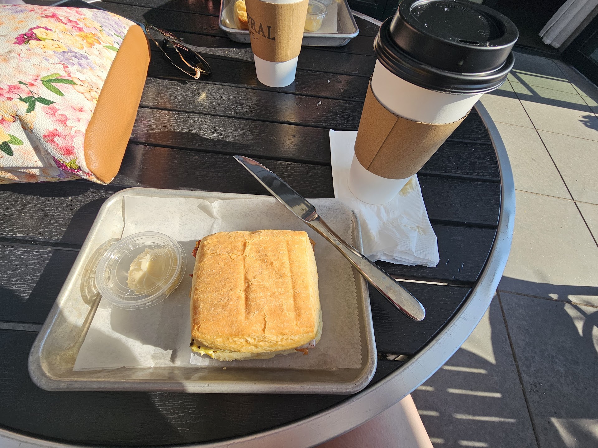 Read moreWent there for a quick morning meal. The place is nice inside. It's definitely the kind of spot you'd want to sit and chill on your laptop or meet for a meeting (which both was being done while we were there). The staff was great. Super nice and were easy to talk to. I got the breakfast croissant with bacon. It was delicious and I would recommend it. However, that place was expensive. I wish I had known prior to ordering that the aeoli and bacon for my croissant cost extra as an add-on. The Frappe I got was just eh. Like cinnamon milk. But I'm also not a big coffee drinker, so do not take my word on that. The food, that's me. My daughter got the veggie frittata that was also really good. I wish I could say if my wife's latte was good but as soon as she set it down in the cup holder, it spilled all over the place because the lids do not fit the cups there (you've been warned). So all in all, it really wasn't our cup of tea (pun intended), but it's a good little spot to hit up just as long you know you'll be spending that coin for a small...