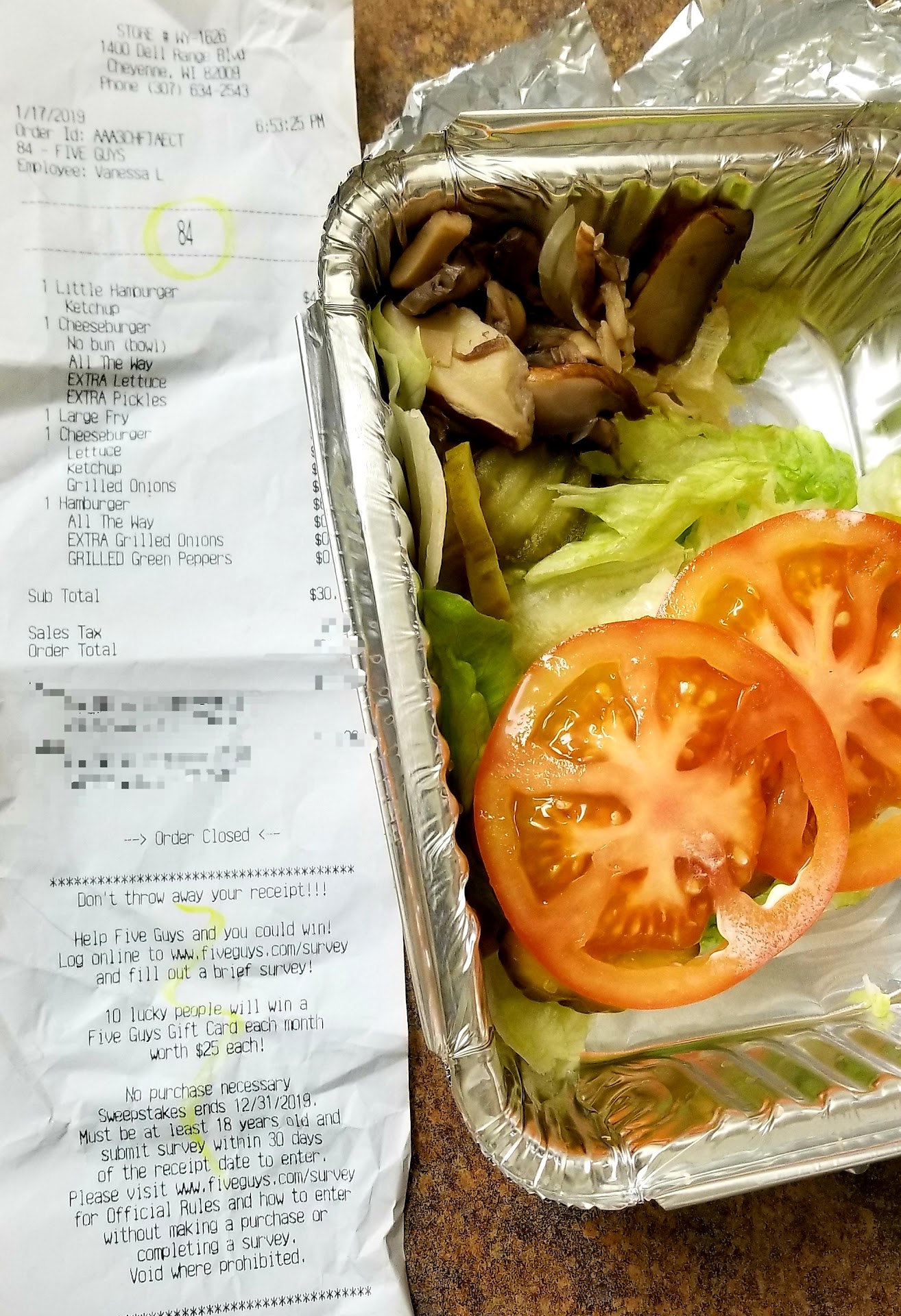 So I don't know if that made it difficult for them to put the toppings on or something but I wish they would have said something when I picked it up. I was standing there for 5 minutes at least waiting for the fries so they had ample time to let me know. The workers were saying to eachother that something was irritating them and they kept looking at my receipt on the bag when she was getting my fries ready. While the burger was still good as it is, when I pay that much (pictures attached) I expect to get exactly what I ordered.