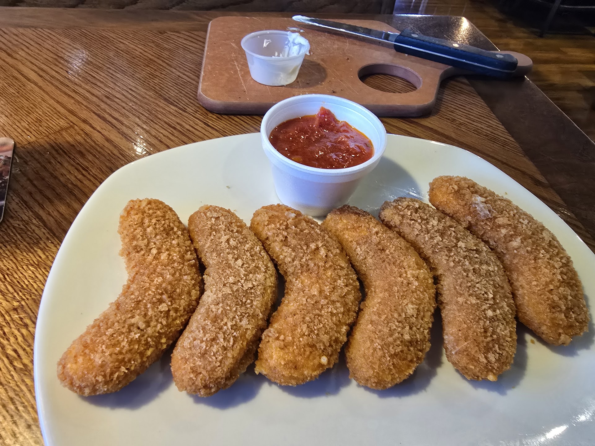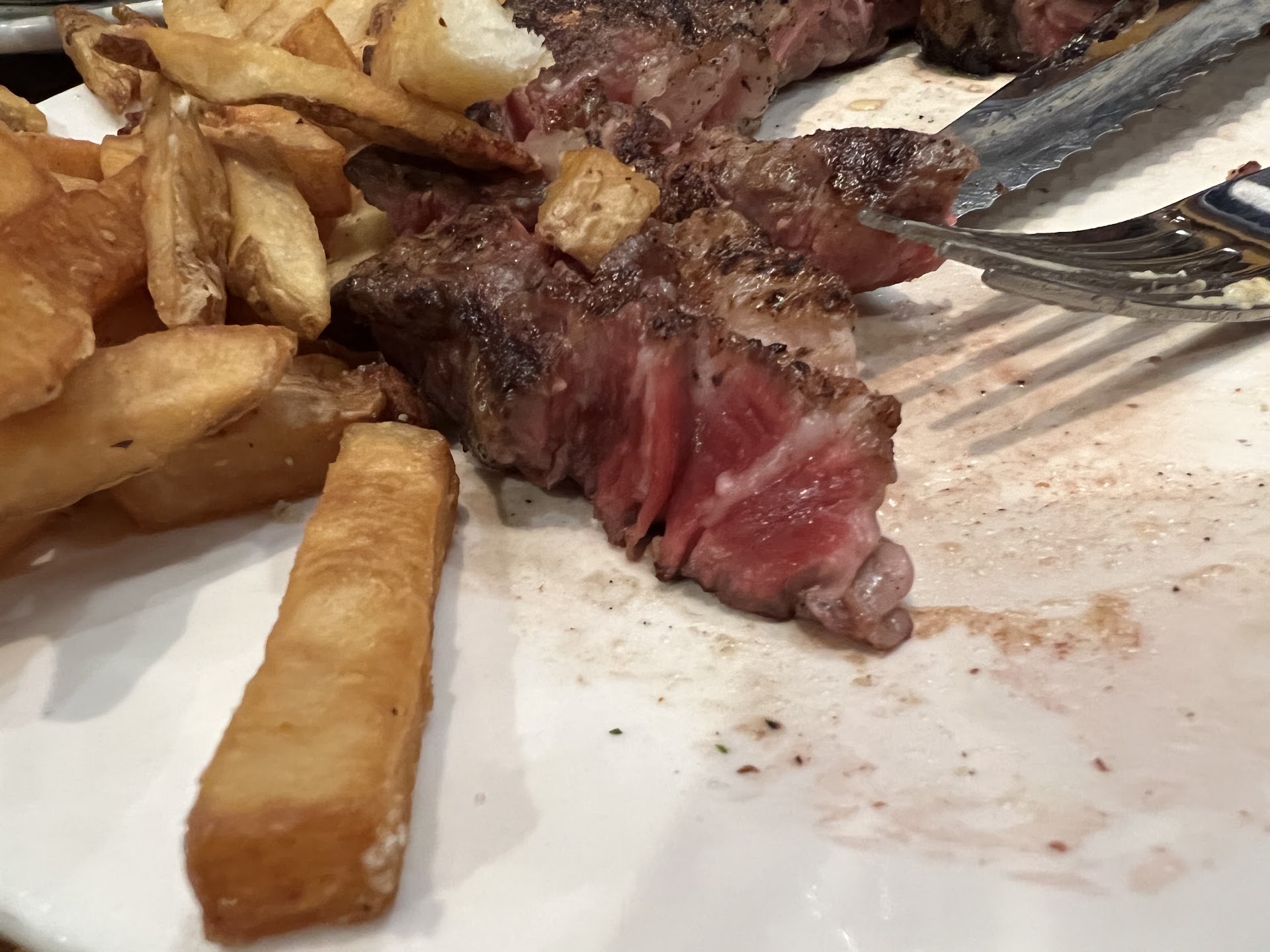 I order all of my food at once when the waitress came to ask about my drink. That was 6 minutes after my arrival. The menu was intimidating because of the prices but I still ordered the new Boomerang Mozzerella sticks, a salad and a center cut sirloin with fries medium. The mozzeralla sticks looked great and tasted fine. I recommend using a spoon to put the marinara sauce on them and the eat them with a spoon or fork. They fall apart fairly easy and you might end up digging one out of the sauce. The salad suprised me. Portions seemed off tastes ok but the ranch was spicy for some reason. Not on my tongue but my throat burned. Maybe try a different dressing. I asked for garlic butter on my steak and they put plenty because it made the plate rather soupy and it made the fries soggy before I could eat them but the fries I did have were crispy and well seasoned. I wanted a baked potato but they weren't ready at the time. My steak was cooked to a perfect medium and it was very tender. I had to wait a little to eat it comfortably because of how hot it was temp wise. The only real fault with the steak in my opinion was the pepper. It overtook the flavor and smothered out the meat and garlic butter. I couldn't give a higher score because of how my food was overspiced and because it took a long time to actually get my main course. I waited 5-10 min between each item brought to me. My ticket was 42 and I tipped 8. I probably won't return here because it is a bit out of the way but I may try again elsewhere in the future and it would be on me to make special requests on seasoning.