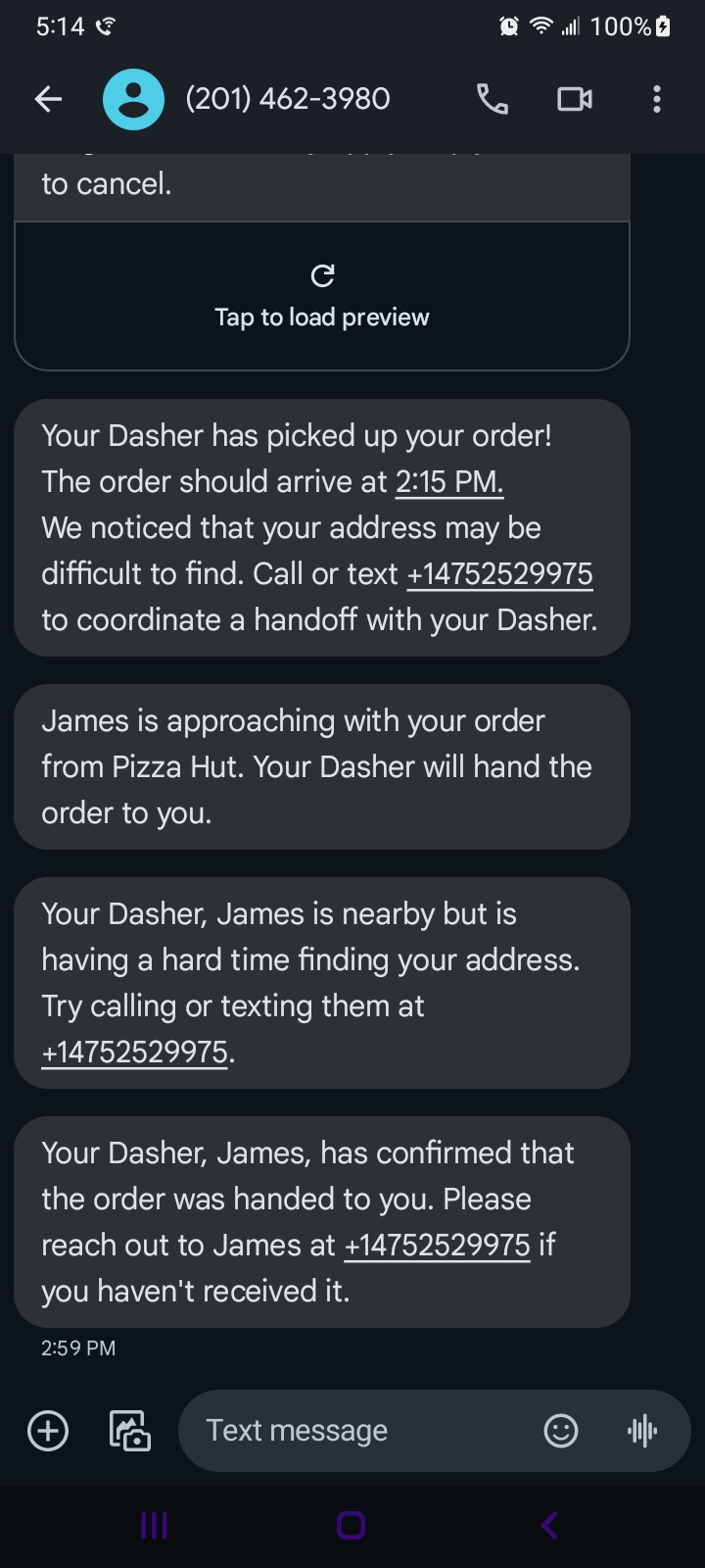 Read moreOrdered from the website for delivery. Did you know they no longer have delivery drivers? Well me either! Website still says 25-30min for delivery. So I place my order then get a text saying doordash will be delivering my pizza. Originally it says my pizza will be here at 2:15pm no big deal. Then using the tracker provided I continue to watch my delivery time change. So I call the store. Oh there is nothing we can do. I am not the manager and she is not here. She will call you back. When my pizza did finally arrive at 2:59pm it was cold. Makes since since it was picked up over an hour before from the store. The dasher did apologize and say pizza hut gave him other orders to deliver first. Definitely won't be ordering from them again yo have food delivered now. I used to oder from the specifically because it wasn't door dash. Keep in mind that hot and fresh is no longer how you will...