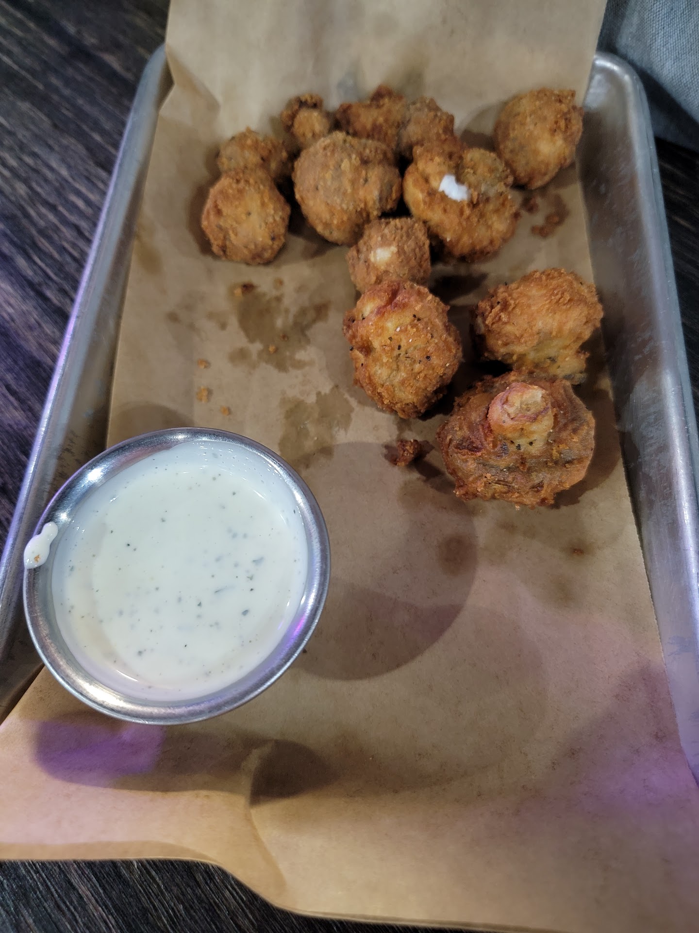 So in our typical weird fashion, we ordered an appetizer and two entrees. We always split half of each others entrees. The kickin’ curds? I’m from the Midwest, I’m picky about my curds. Honestly better than most I’ve had from home. Hands down. I’m not a prideful Midwesterner…. I’ll admit when someone does something better. Both the regular ranch and the fire ranch are… well… fire.