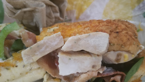 The entire experience was horrible. I assumed he would take his time considering we were legitimately the only people in there. But no. Dude threw my sandwich together like he was in the middle of a super bad rush. My toppings and meat were put on sooooo uneven and sloppy. They went everywhere and now I’ll have to fix that when I get home. When he went to wrap my sandwich a lot of my toppings fell out onto the table and he scraped it all off the table and threw it back on my sandwich! EW!!! Crumbs and leftover stuff on my sandwich :(((He also didn’t wash his hands before starting.