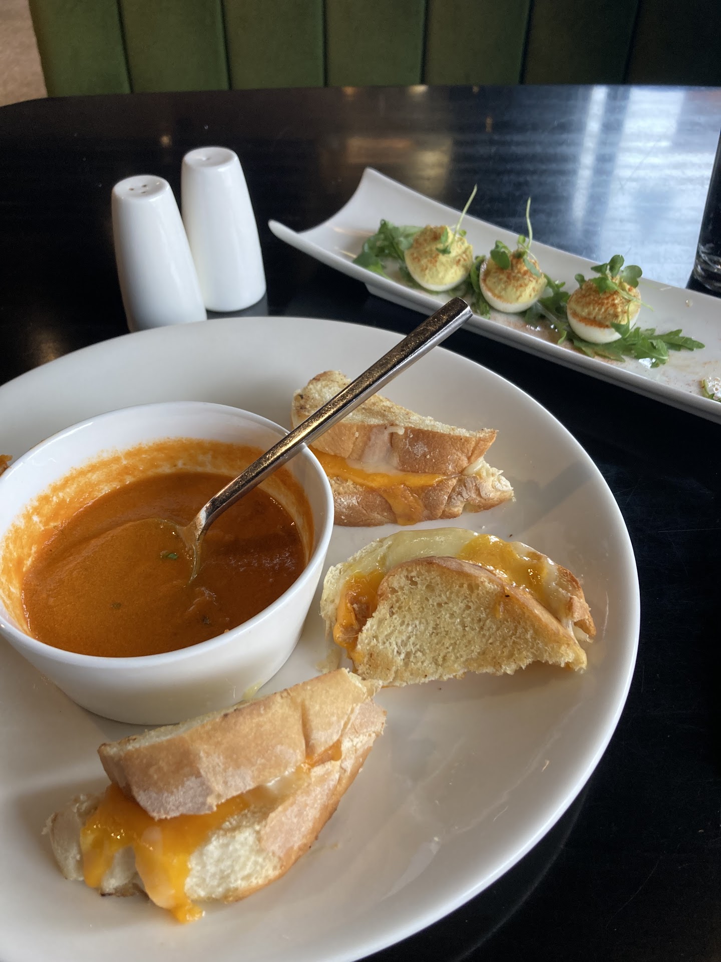 Disappointing. It has a great look and the bar is cool but the dining room is dark and noisy. The server was too famliar and he seemed to expect a conversation with us. There is an odd smell as you enter the restaurant. Food gives style over substance. Besides, what good is a pretty artichoke dip if you can't see it. We had reservations. Were taken to a table still being cleaned. We had to wait a long time for water and the server told us they ran out of water. Okay. He reminded us to save room for dessert and then brought the check before we had a chance to order. The Euro pop music needs to go. The odd smell needs to go too. Not sure if that's from the kitchen or what. We'll hit the bar again. Doubt I'll eat...