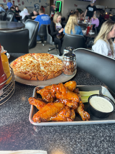 Pizza online looks great but don't be fooled. I ordered a plain cheese pizza and it was weird. Cheese tasted kinda bland and cheap then there were not enough sauce inside it between cheese and dough. Now the dough tasted burnt. It was not over cooked but it tasted burnt. I asked our waitress, B, if the pizza dough was fresh made or frozen. She had to go and check then informed me that the dough was, indeed as I suspected, frozen. This influenced the taste. You are buying frozen dough (which explains why other options were laced with heavy toppings like my friend who ordered chicken with BBQ to cover up the taste of the dough) im not sure if the ENTIRE pizza was frozen or not. The slice was not as crispy or crunchy but bent softly and was chewy. I had trouble eating that. I asked for parmesan cheese toppings and was given some. The ambience was very nice. They had a variety of people in there from families to football fans of all ages. Their lemonade was sweet(which I liked).