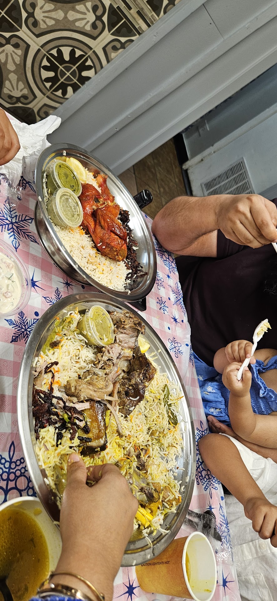 Read moreWe happened to bump into this restaurant for a late lunch....while exploring that area. We peeped in and saw that it is literally a hole in the wall, with limited seating right next to the serving counter, with authentic feel. Clearly, it seemed like a favorite place of some Yemeni people.....So we decided to give it a shot even though it was very modest decor. There was a short wait time to get seated. But they set up the table for us, very quickly and patiently answered all our questions about what do order. We had never tried yemeni food before this. We ordered both lamb and chicken out of the limited venue. Both dishes were served in a platter style to share. Both platters were pieces of well, cooked meat, served on a platter of rice and lots of salad and couple of sauces. We also ordered butter milk as accompaniment since there was not much curry/saucy moisture in the dishes. Portions were large, taste was good and dishes were not greasy....and best of all, we tried something new. Two platters were enough for 4 adults. We also tried a warm dessert Areka, which was delicious! The staff were also eating in batches on the other table, so likely a small family run modest, newly established small business. This was a very new experience for us.... and overall we...