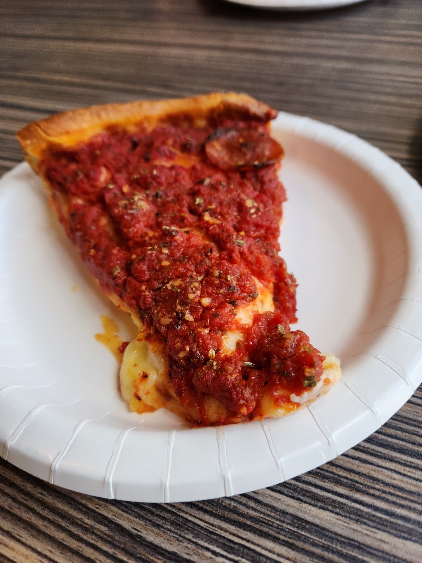 This is one of the only spots where you can get deep dish pizza by the slice, so it's a convenient spot if you’re craving deep dish (or any pizza) but don’t want to invest in an entire pie. However, I was unfortunately not super impressed with the deep dish here.