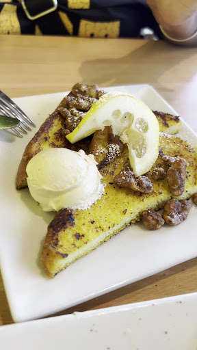 Read moreI can go to IHOP for a better experience. Food cold 2. Table was not cleaned was told will send busboy to clean table. Coffee comes table still not cleaned was told. Waitress hands us some napkins. 3. Clearly training is lacking- I noted my cream was carried out in a silver cup by hand. I watched as the young man walked slowly so he would not spill. Place the cup on a plate or tray with the coffee. 4. Pricey - everything is alacarte. $20 for French toast which amounts to two slices of bread cut in half with a tablespoon of pie filling on top. 5. We’re at a small table for two and had six plates- ridiculous. 6. Had to ask for coffee refill - no check in the table if we needed anything. 7. Did not offer separate checks - should not assume patrons will do 50/50 split when their orders are different. Tables too close - we were asked to move our chairs because patrons behind us could not get in their chairs and our table backed to a wall. Our table also was not level - I had to tuck a folded napkin under the base or risk my coffee sloshing. 9. noise level too loud. I called in to inquire about reservations and the person answering could not hear me. 10. One plus the bacon was crispy the way I like it. But even in that note u won’t be returning. There are far too many places for breakfast with better service, greater selection, more reasonable,...