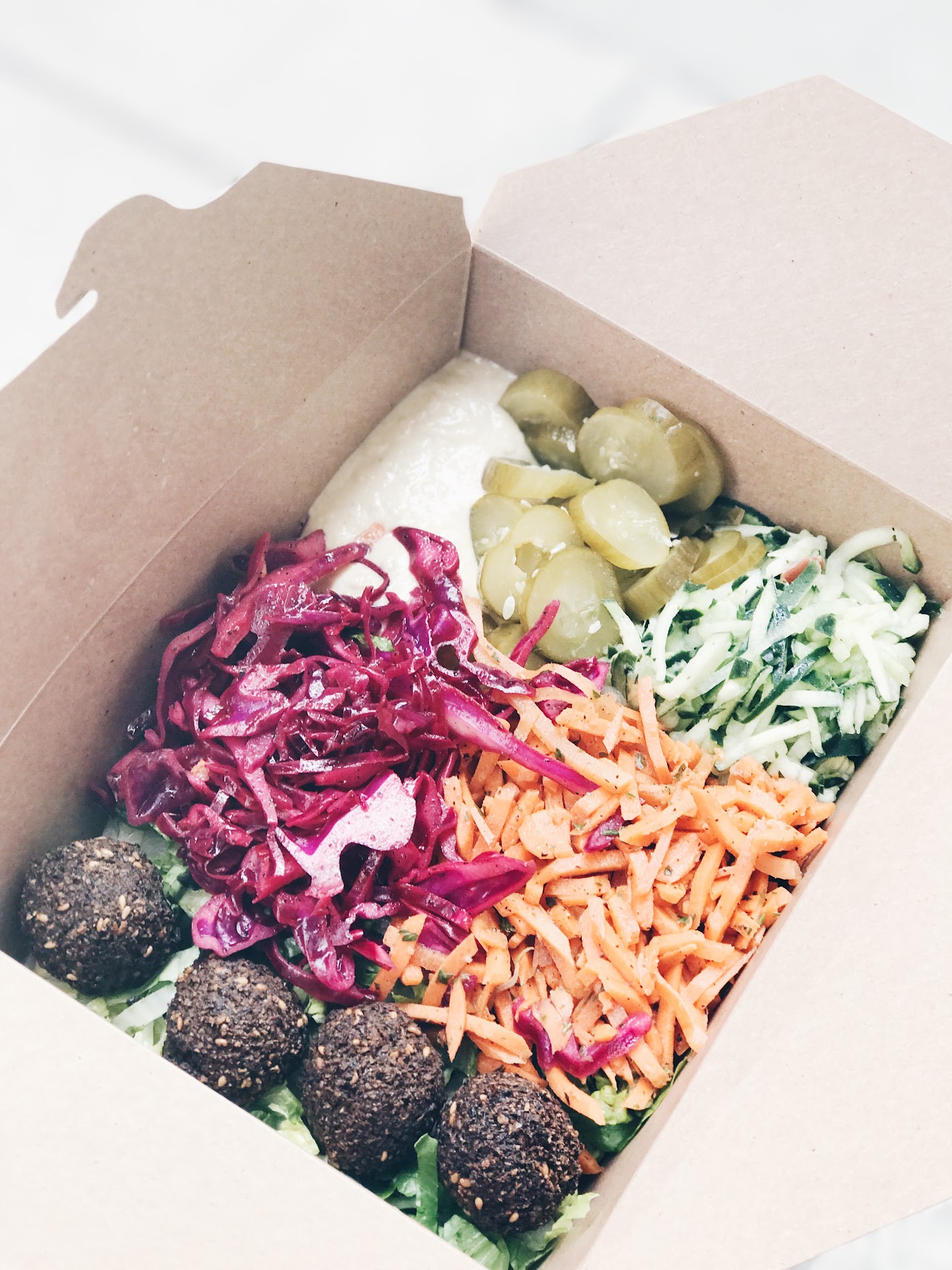 Yum! My favorite dish here is the falafel laffa (also fun to say lol). I prefer their laffa bread over their pita as I found the pita to be a bit dry (nothing like Naf Naf's pita from heaven). The falafel is so flavorful and they mash the balls when building your laffa so it is easier to eat. I have also tried the chicken and steak and if you are dying for meat, I'd suggest the chicken. But the falafel is the best by far. They load the toppings on so this is a great place to go if you are hungry. If you are extremely hungry you can get the box which is insanely large and filled to the brim with your choice of protein, hummus, rice, cabbage, pickles, and any other topping you'd like. I would also highly recommend the fries. Oh, the fries. They are double fried! Will you find a soggy pale fry here? I think not!! Every single fry is crisped...