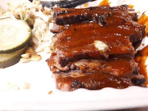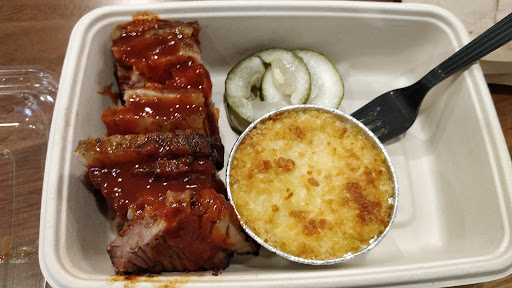 Read moreI walked around downtown a while to find this place nestle within a corporate building with many other restaurants. I agree with the the other reviewers this place is: superior by association". I think it's great to have a BBQ option for people who work in the building. Don't be like me and actively hunt this place down!!! I had the pulled chicken which comes with slaw and pickles. The chicken doesn't taste pit smoked it tastes boiled with your choice of bbq sauce ( they have 6 types). I chose Memphis which isn't bad but it's so watery it doesn't stick to the meat. The chicken isnt nasty but it's just unseasoned and bland, not even a hint of smokiness. I didn't expect much from the slaw and it too failed my extremely low expectations. Tasted fresh but no flavor! How can you mess up pickles??? Pickles were weird combination of butter sweet pickles and vingary dill. If the meat was actually smokey and the BBQ sauce was thicker I would have forgiven the sad side items. But it's...