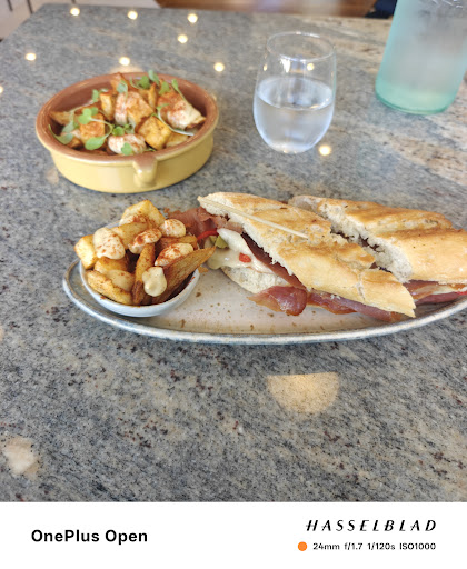 The menu is deliberately limited, reflecting a focused approach, though it leaves diners with only a handful of choices. I sampled the patatas bravas and the Serrano ham sandwich. The potatoes arrived attractively presented, though texturally uneven — some were crisp and well-executed, while others were undercooked and still firm at the center. Flavor-wise, they were pleasant but fell short of the bold punch typically expected from this Spanish classic.
