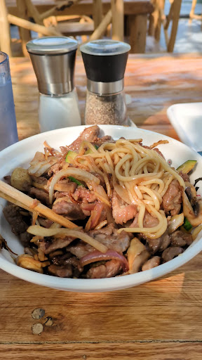 This is an absolute hidden gem. It feels like a vacation restaurant. The perfect getaway spot from the busy city. The food is fresh on the spot from the hibachi grill. I got the Mongolian bowl with lamb, steak, mushrooms, onions and zucchini with noodles and Mongolian sauce. You can choose your options of meats, veggies and sauces. The cost is very reasonable. You have the option to order from the menu or build your own bowls. The food, atmosphere and service is excellent. I have no complaints. The bathroom's even nice and clean! This is the perfect place for romantic dates, business meetings, lunch, dinner with friends and family. They have 3 seating sections (2 inside and 1 outside) with a small parking lot (FREE) on the side of the restaurant, if you're lucky, which I was. Their boba tea is also delicious with FRESH FRUITS!!! I got the pineapple, passion fruit tea and it...