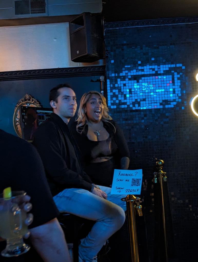 The woman running the karaoke can get any song you want up, it's free to sing (but tips are appreciated), and we got the party started with Holy Grail which got everyone out to the mic.