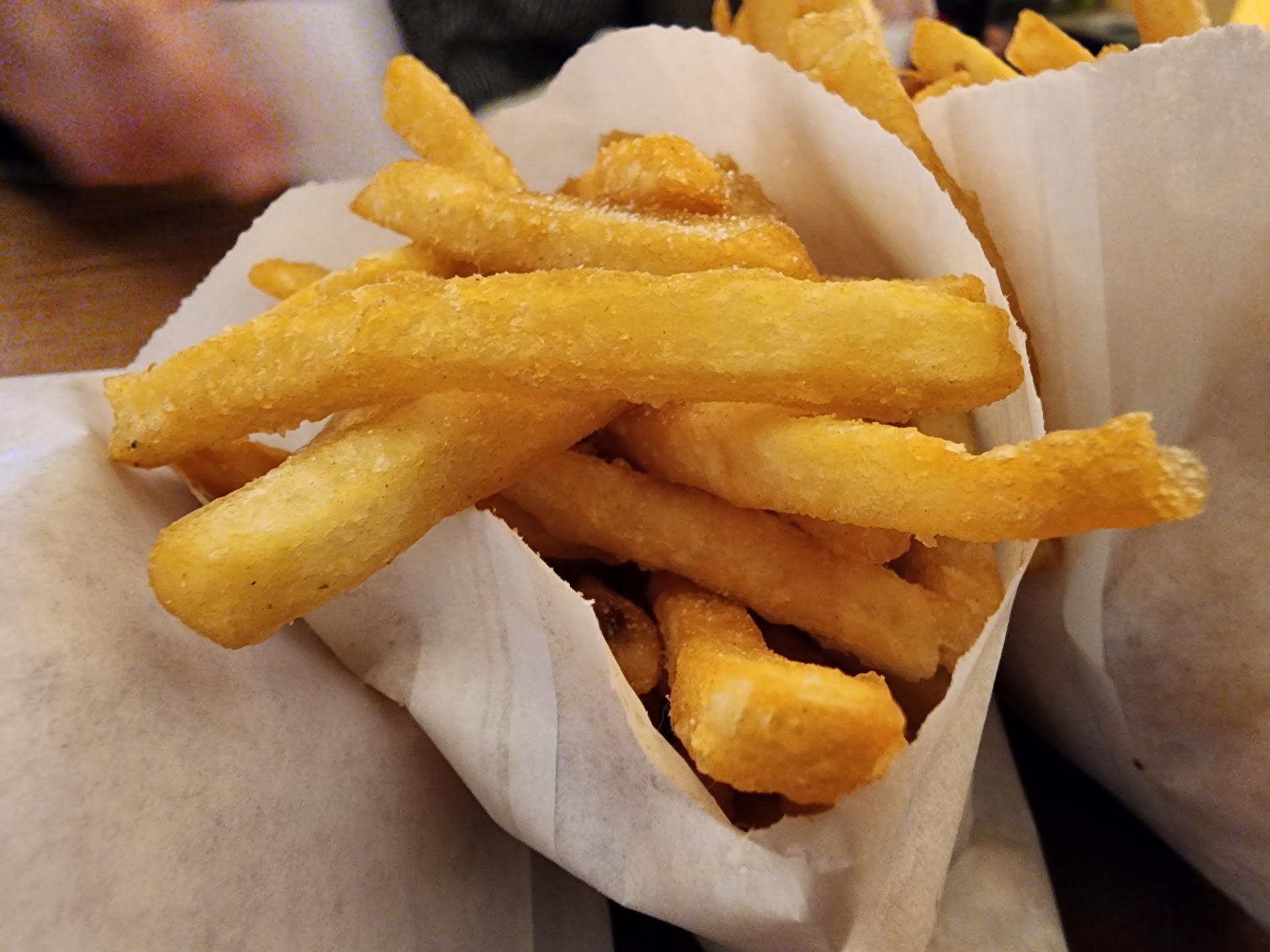As I said, not a huge burger person because they tend not to sit well, always too heavy in restaurants so I tend to only have them at home. These burgers are perfection! I ordered a Single Alley burger cooked medium, their standard, and had the garlic aioli instead of the house special sauce. My boyfriend got the Single Alley burger prepped as on the menu. I have never had such a flavorful burger where the meat tasted so good without a lot of seasoning! The bun was a soft deli style, not too sweet; the grilled onions were the best texture (not too crunchy, not slimy), and the house sauce was surprisingly delicious (not like thousand island at all!). The hot fries were a great balance of crispy outside with just enough soft in the middle. And the baked-to-order giant cookie was amazing.
