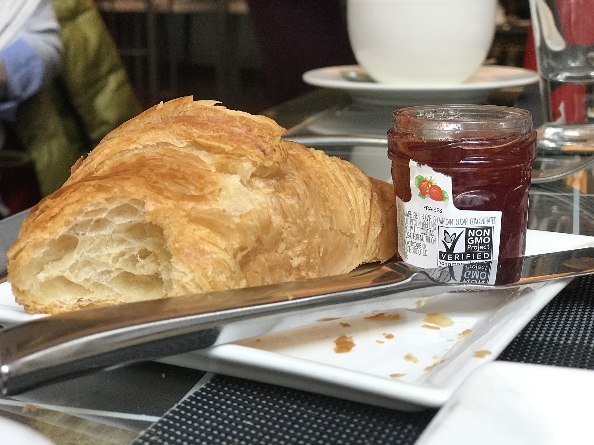 Bread basket was good - chocolate croissant, small baguettes, and some other items.