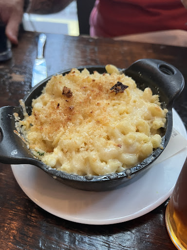 Fish and Chips- Cod fish was pretty good, the breading had a small kick and came with a spicy mayonnaise based sauce on the side. The fries were amazing, I recommend asking for malt vinegar. Side of Brussels Sprouts- 9/10, very good Pulled Pork Sandwich- Decent taste, but kind of small portion. It does not compare to the pulled pork you would get in Kentucky. Came with sauce, but the meat already had some on it. I prefer the pork to be semi-seasoned and juicy, but to come without sauce because I prefer to add my own. The sauce options were all thicker barbecue sauces, which were decent, however, I prefer a vinegar based sauce (like Starnes, a local brand from Kentucky). Overall- Our waiter was very attentive and he always made sure we had what we needed. The atmosphere was nice, a bit of rowdiness from some patrons at the bar (nothing too much, and a bit of entertainment). At first, we were sat in their outdoor area in a pavilion like structure (on OpenTable we accidentally made the reservation for outside). Once we were out there, we asked to be moved inside (once we realized our mistake) and they graciously let us. As for the outdoor area, it was enclosed besides for the door which was a nice shield from the wind, however, the table and chairs were unbalanced (not their fault, the sidewalk it was placed on was not level). The wait staff was very knowledgeable on the beers they had on tap as well as having recommendations for each menu item. I enjoyed our experience and would recommend...