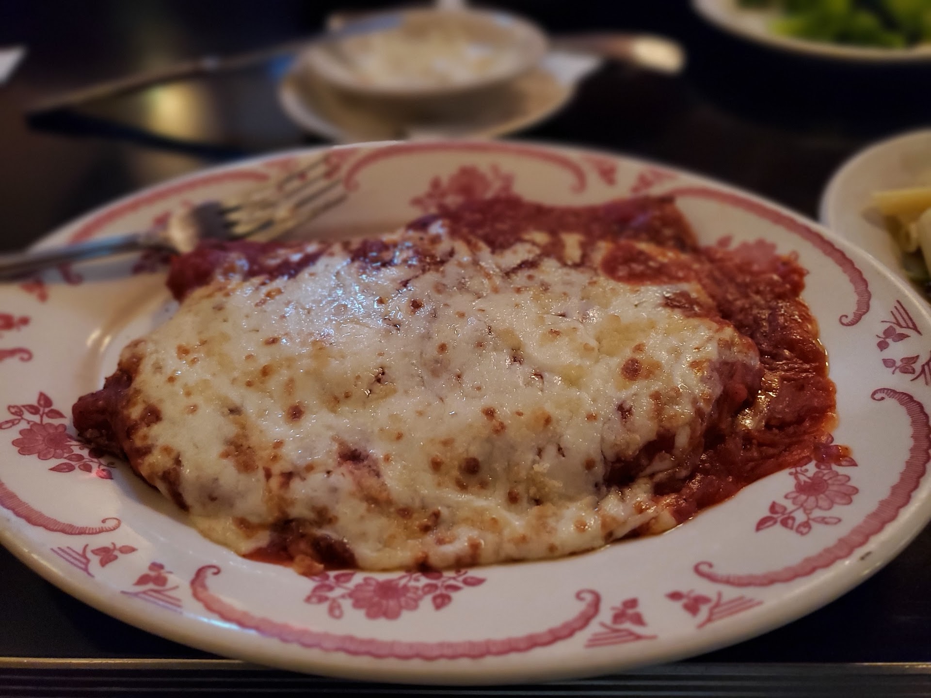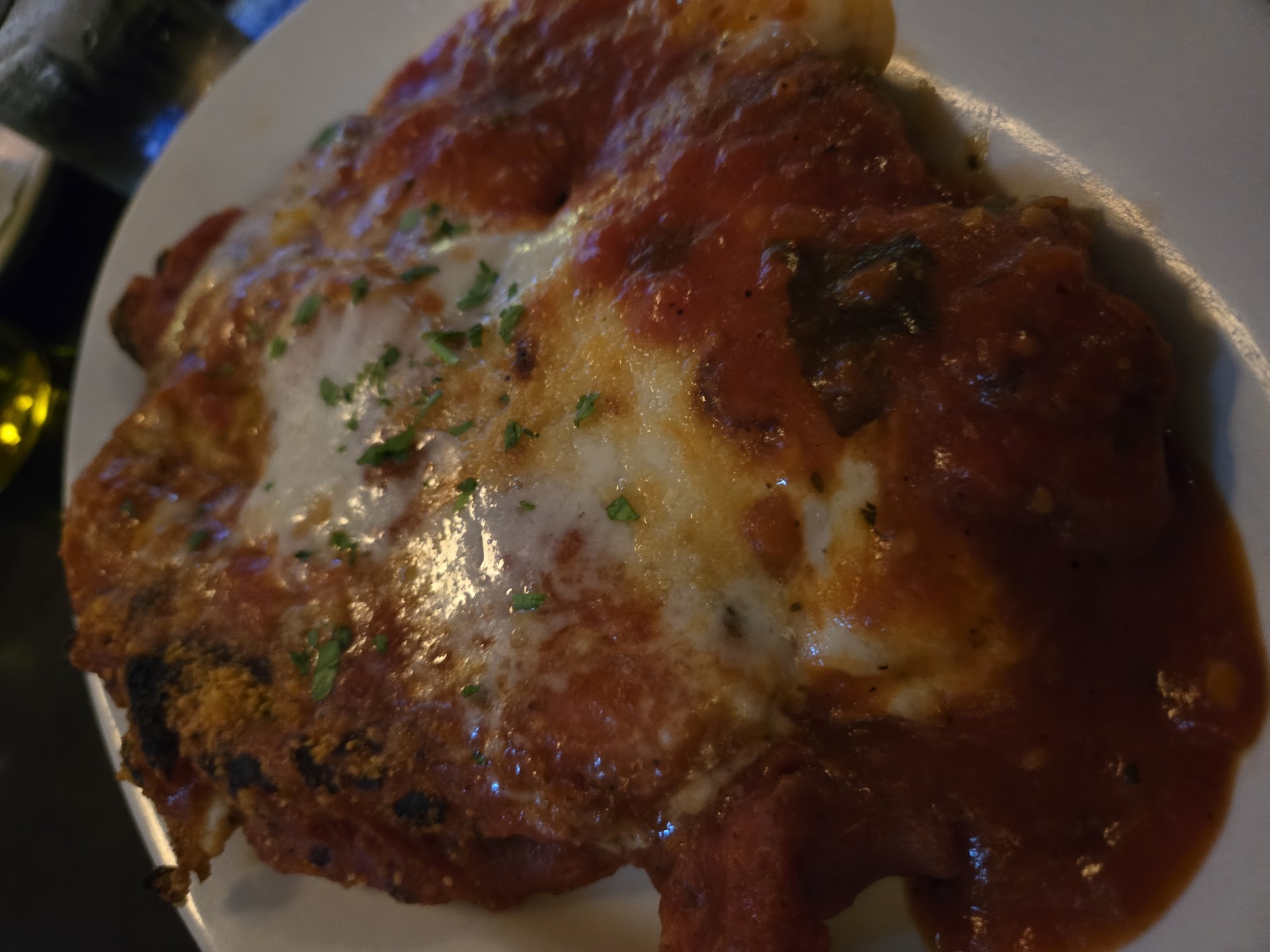 Club Lago is a very cozy diner with a warm and inviting interior. I reckon that everyone coming here has been coming here for the past several decades. Service is prompt and welcoming, no issues there at all. I already knew that the menu was quite basic, but I wasn't expecting 'frozen-food-aisle' level of basic. First of all, the marinated calamari salad has nothing on Rosebud's equivalent, where the peppers and every other ingredient in the salad were also perfectly pickled in the same marinade/brine. Club Lago's salad only had the few pieces of calamari marinated. The rest was just chopped washed salad with olive oil. Speaking of which, I applaud their efforts to recycle items and use a ketchup bottle for the olive oil, but my issue was how bland the olive oil tasted. Honestly, could have been canola oil. The bread was cold and at least 1 day old. Didn't bother throw it in the oven for a few seconds before serving it. The 'best in the city' Onion Rings, are not even the best in the block. Bland and oily, soft and soggy. I don't get it. Back to the main meal, I had the Vitello Parmigiana. Honestly, it's the same tier of frozen aisle veal parm. The cheese was tasteless, the sauce felt like it was poured out of a jar, with too much sugar to dilute the blandness. The pasta isn't fresh nor are they advertising it as fresh, but the meat sauce again tasted like something either out of a jar, or something your mother would put together in a hurry before leaving. The fish was nice and flaky, but spiced using a store-bought spice mix my wife immediately recognized. The fish came with a side of Broccoli. We love fresh broccoli. We steam it everyday and it tastes just incredible. This on the other hand didn't have the taste of broccoli. It tasted like... raw garlic. We couldn't even go through all five florets. I'm guessing they weren't fresh, and frozen broccoli is kindof tasteless, so they cooked it with garlic instead.