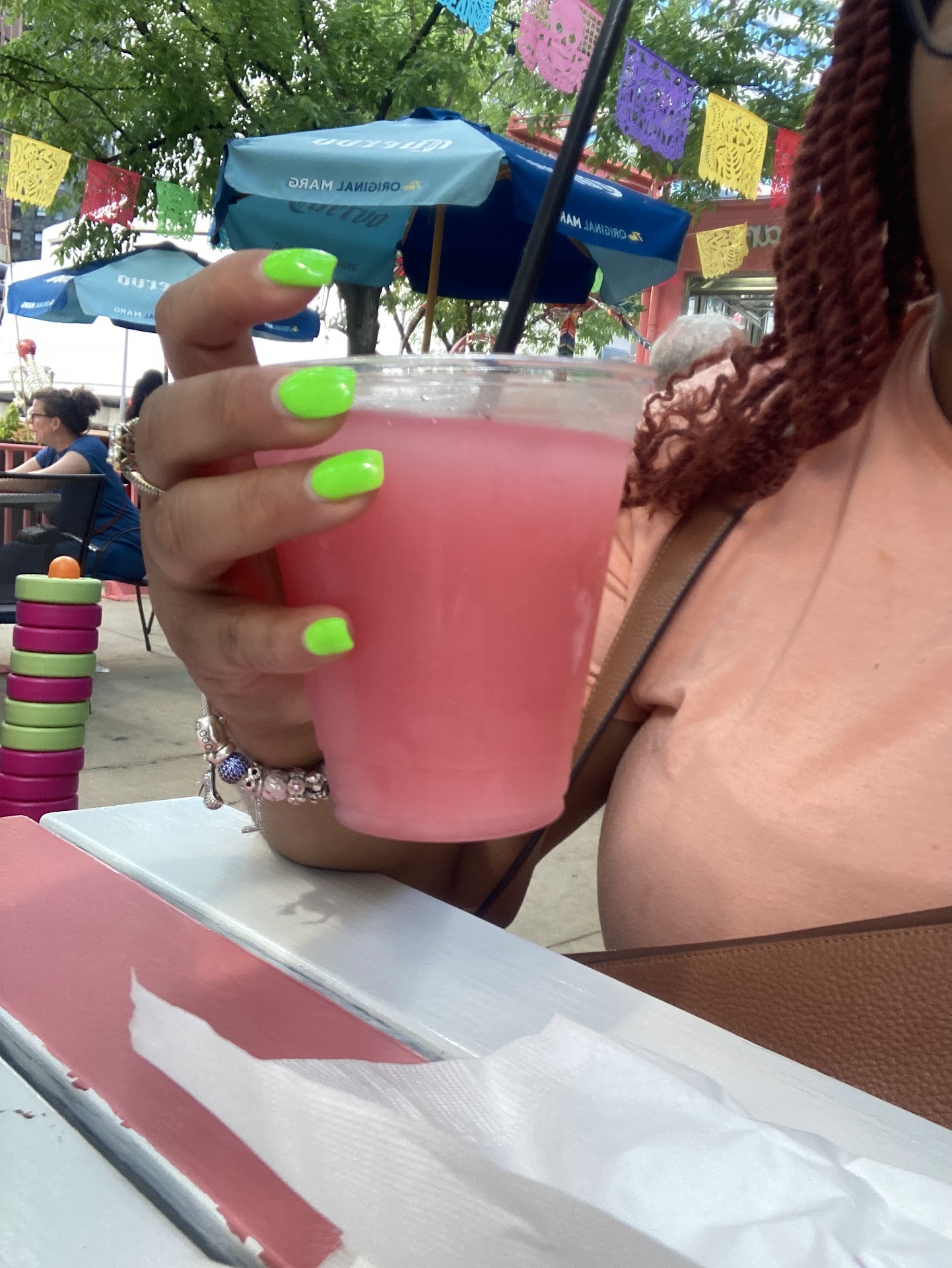 Ordered the recommended Prickly Pear frozen Margarita & itās packed w/ a POWERFUL PUNCH of tequila. Also, it was just a nice amount of sweetness that I would get again.