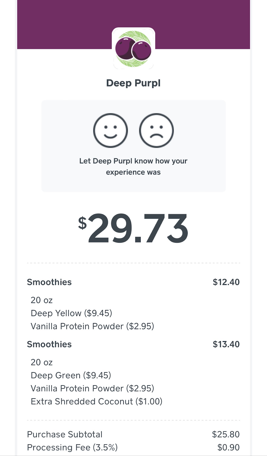 Went in today because of the suggestion of some girls that work at lululemons. Ordered 2 smoothies. Asked if she had whey protein powder, lady said yes. Ordered the deep yellow & deep green, both with whey protein powder. After we paid I saw she put in vegan vanilla protein powder, not whey. The deep yellow was extremely thick & lacked smoothie in the cup, about 3 inches from the lid. It wasn’t filled. I pointed it out to the girl & said she had no more, sorry. We left & it tasted way too sweet so we returned & stated it wasn’t made right. It’s too sweet & too think.. We’d like the deep purple smoothie with no protein. She made it, with an attitude, didn’t refund the fee for the protein powder. Walked out with the deep purple smoothie & that was soo watered down. Tasted like water with seeds. Someone please teach the employees customer service & smoothie making skills. I’d like a refund too. PS. Left her a cash tip too before the smoothies were even made. Evidently, that didn’t make a difference! Don’t waste your hard earned $30 for 2...